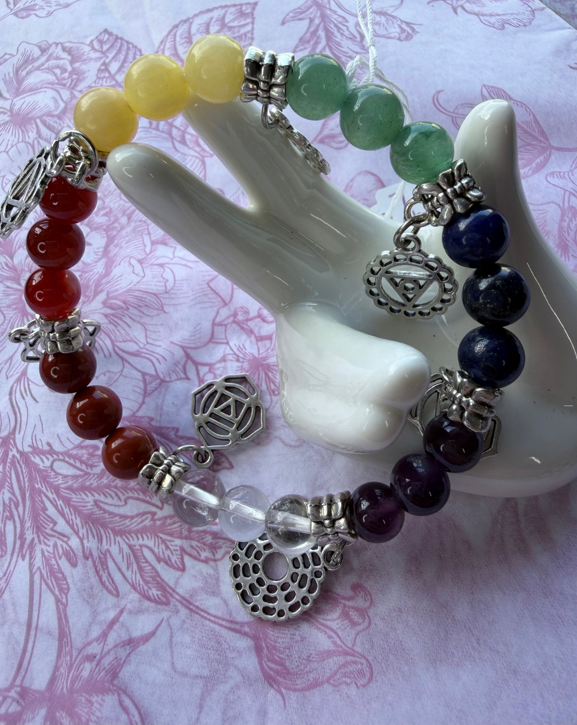 ✨ Charms: Multiple silver-toned chakra symbol charms around the bracelet for extra meaning and a beautiful statement look.