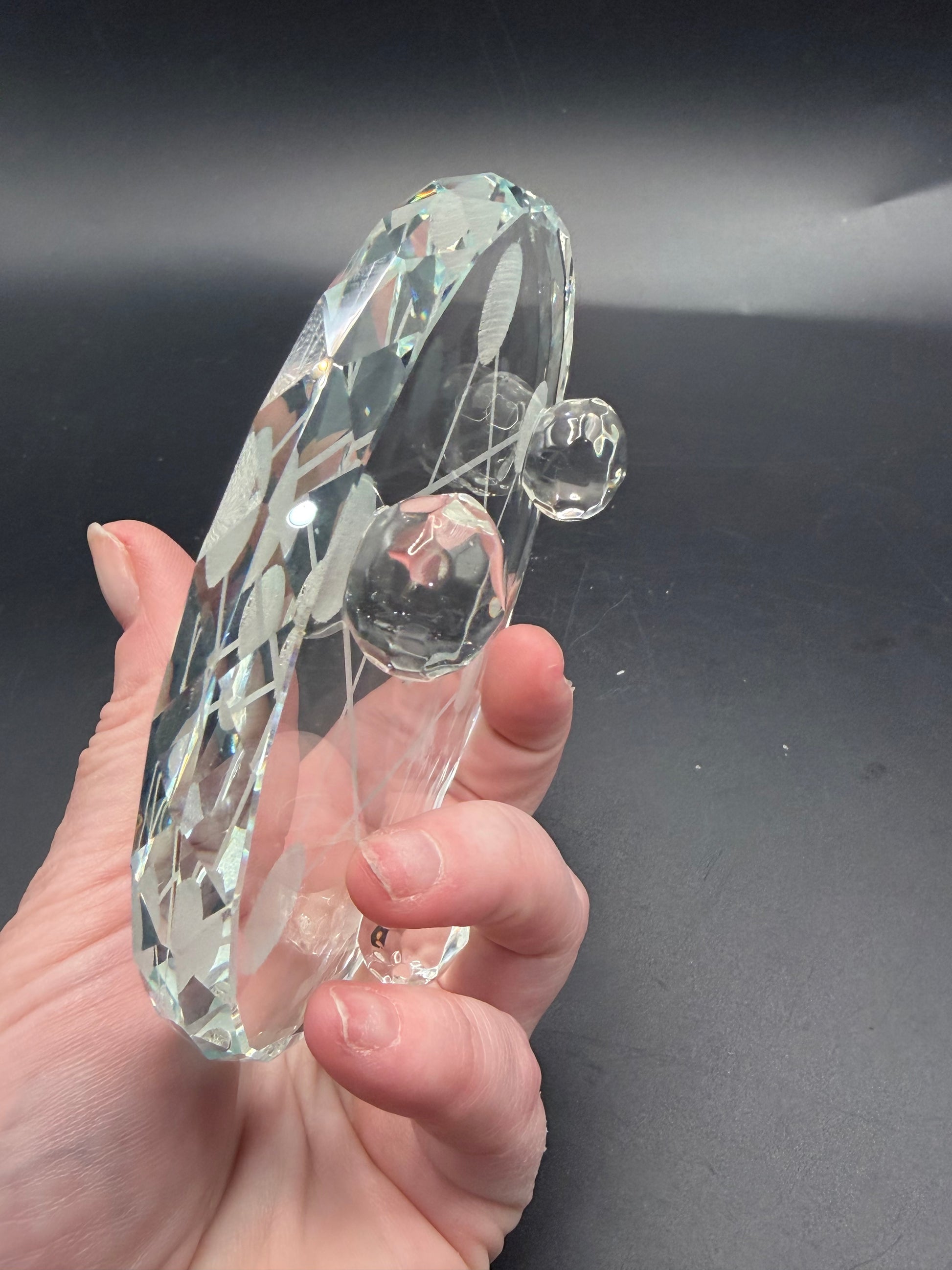 Crafted from solid clear glass with a faceted edge and raised feet, it offers both elegance and stability—making it a stunning addition to any altar, shelf, or sacred space.