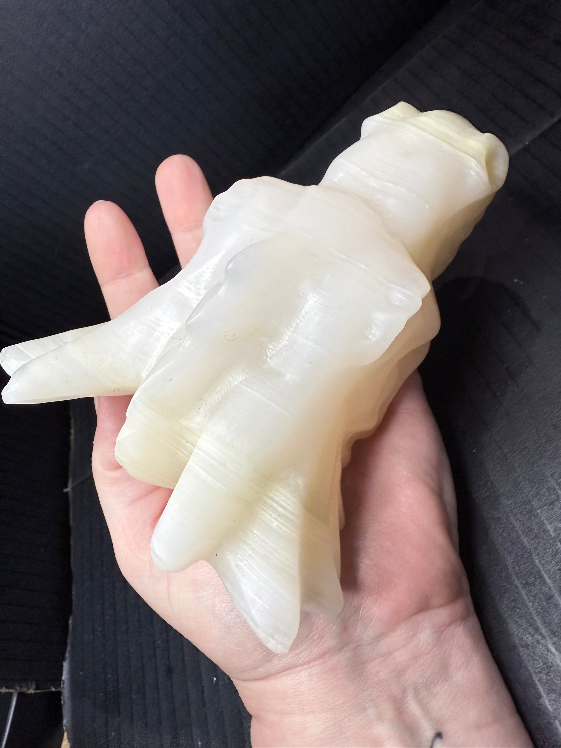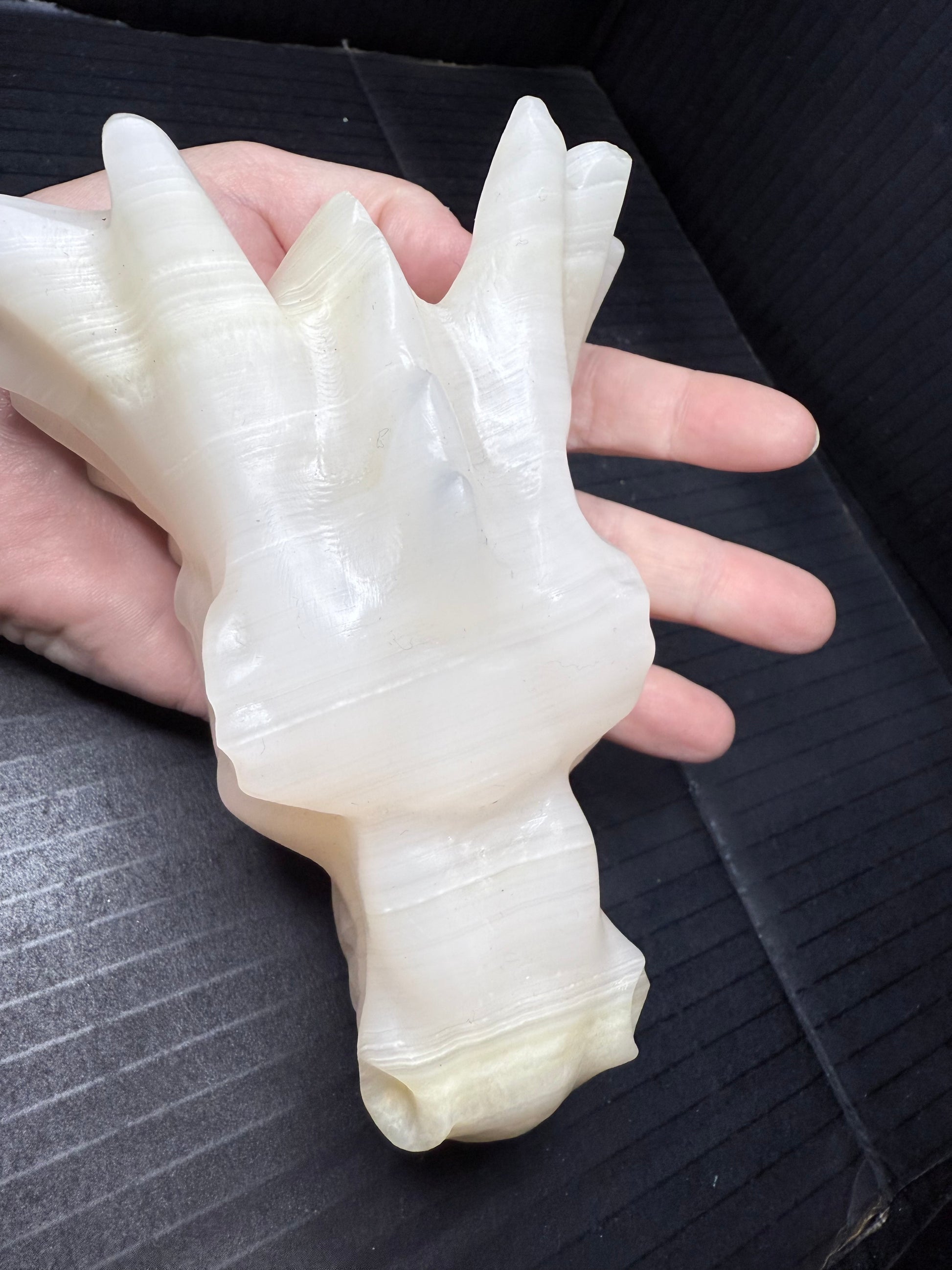 Powerful and majestic, this Afghan Jade dragon skull merges the strength of the dragon spirit with the calming, protective energy of jade. With its deep green hues and unique patterns, it’s a captivating piece for any crystal lover or collector.