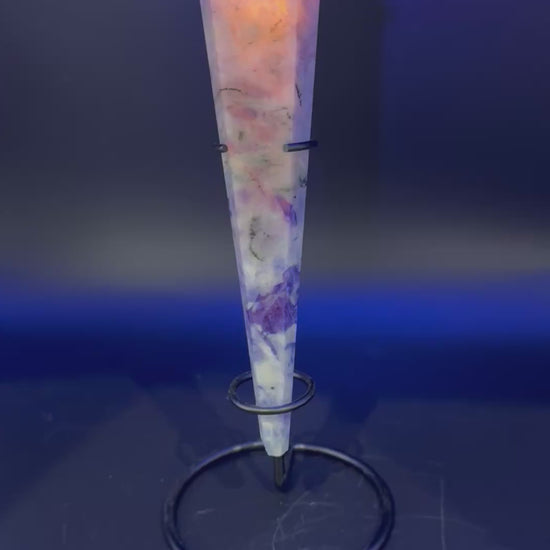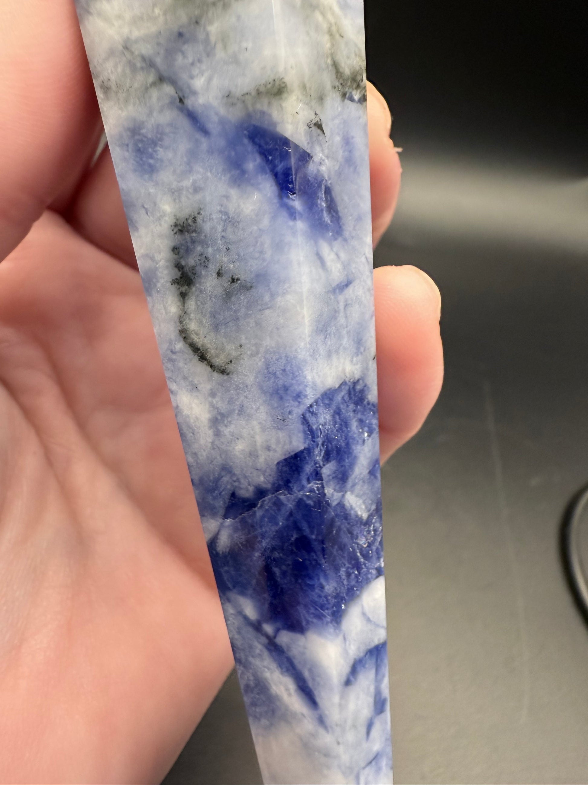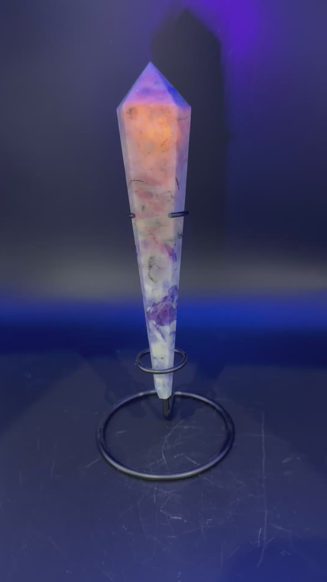 A stunning addition to any crystal collection, this AfghaniteāSodalite wand features dreamy celestial blues and creamy natural marbling, beautifully displayed on its own stand. Not only does it emit powerful calming and intuitive energy ā itās also UV reactive, glowing under UV light for an extra magical touch. Perfect for your altar, desk, or display cabinet.
