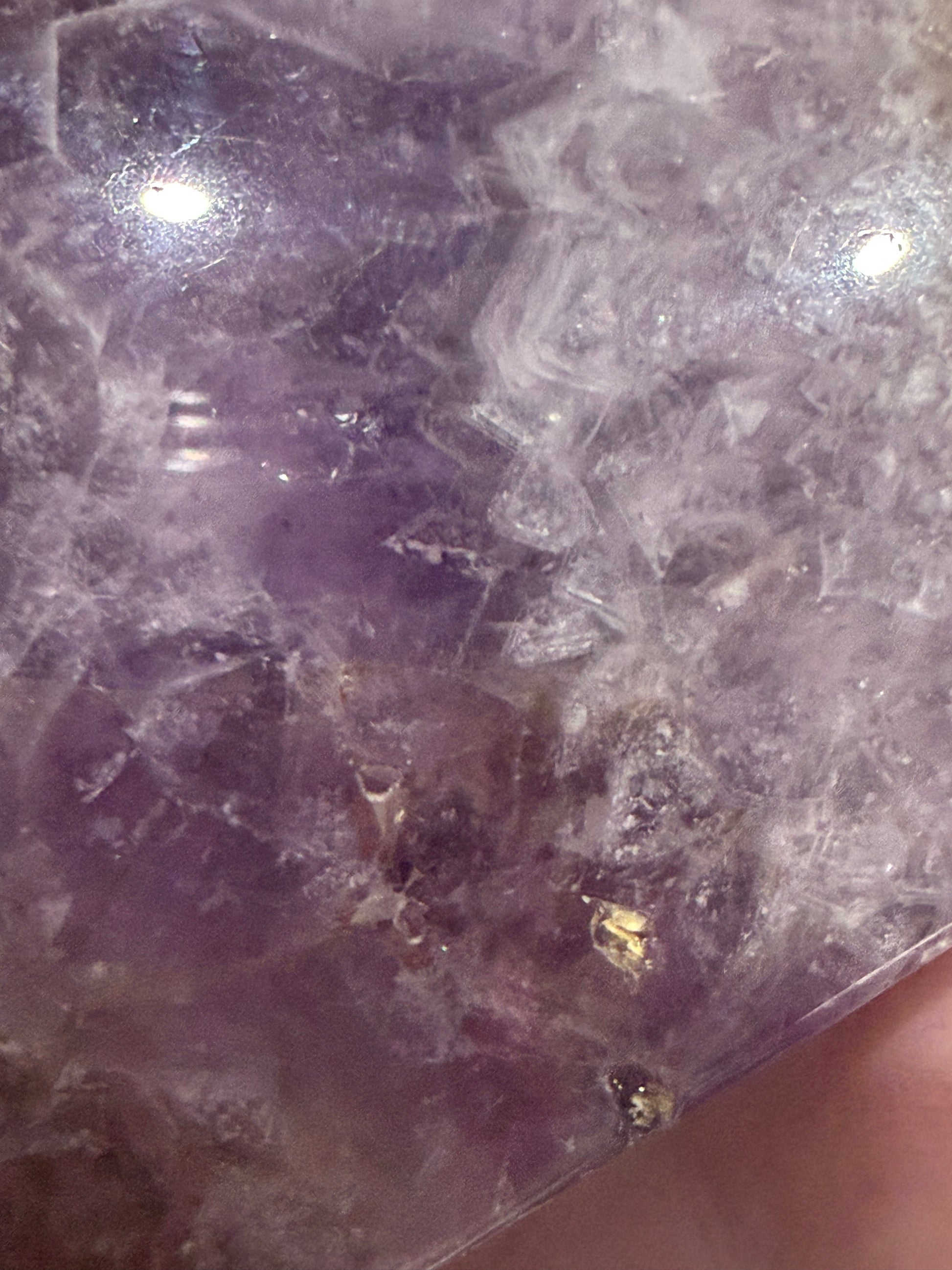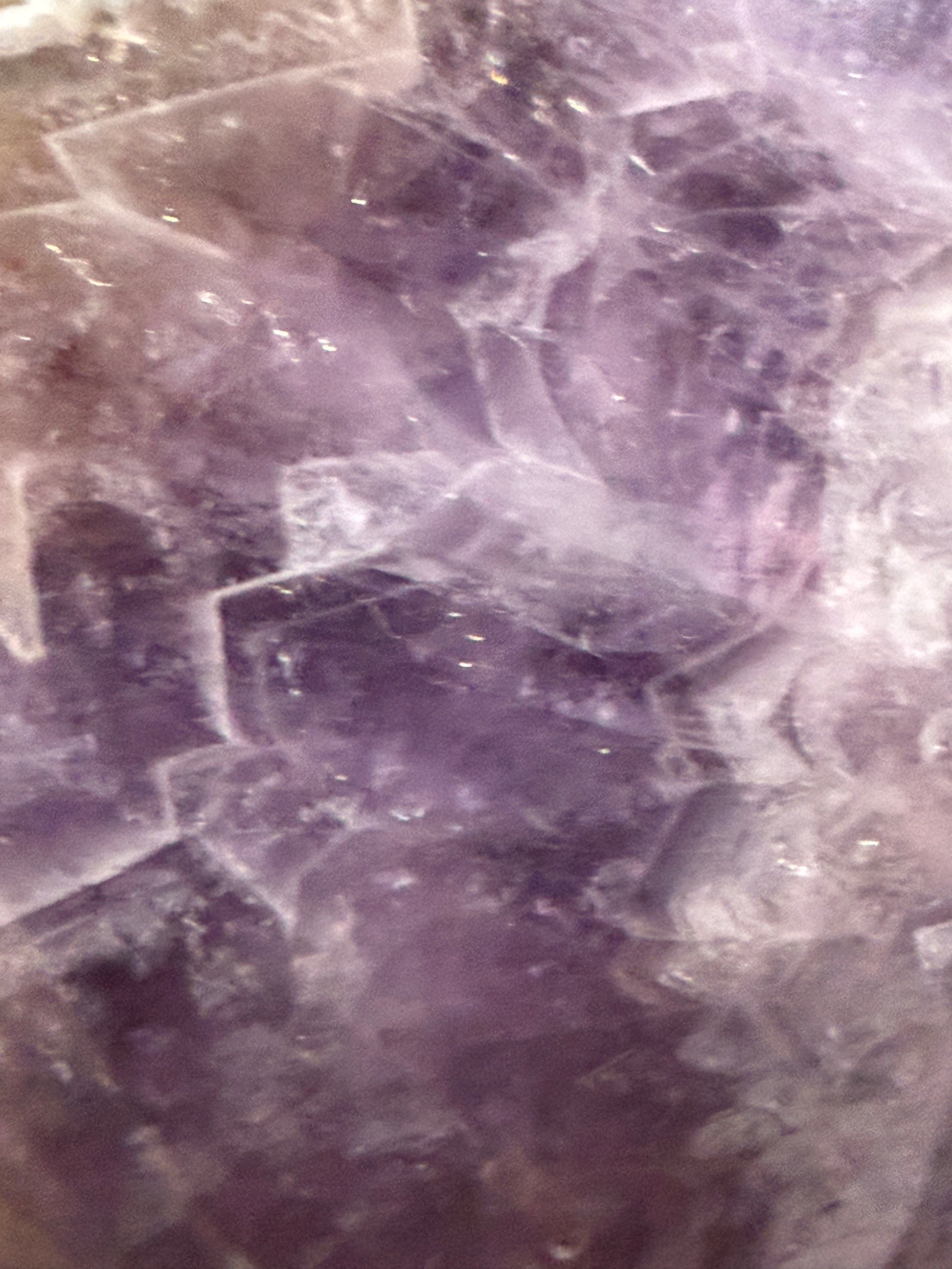 - Amethyst crystal zones with visible internal texture and growth patterns