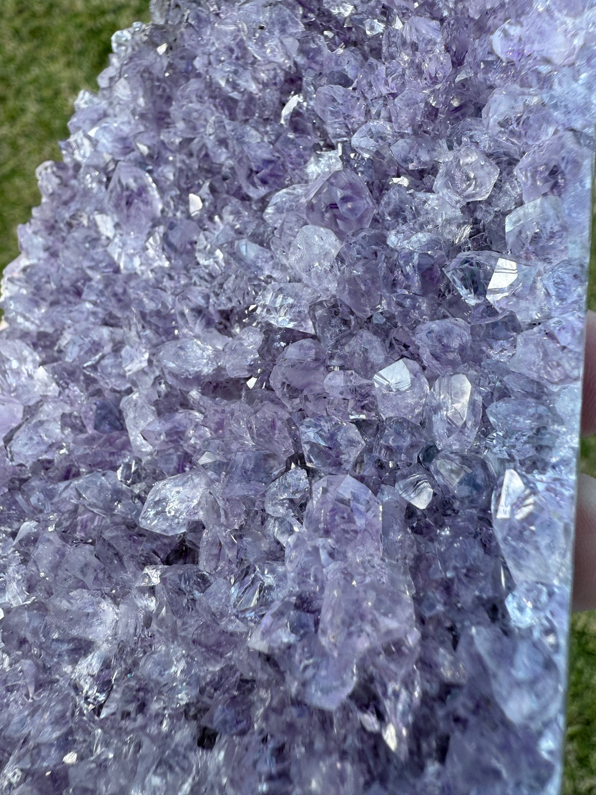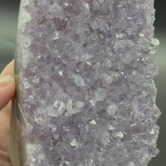 This breathtaking Amethyst Cluster sparkles with shimmering lavender points, each one reflecting light beautifully. With its strong colour and natural crystalline texture, this piece is perfect as both a healing crystal and a decorative statement.
