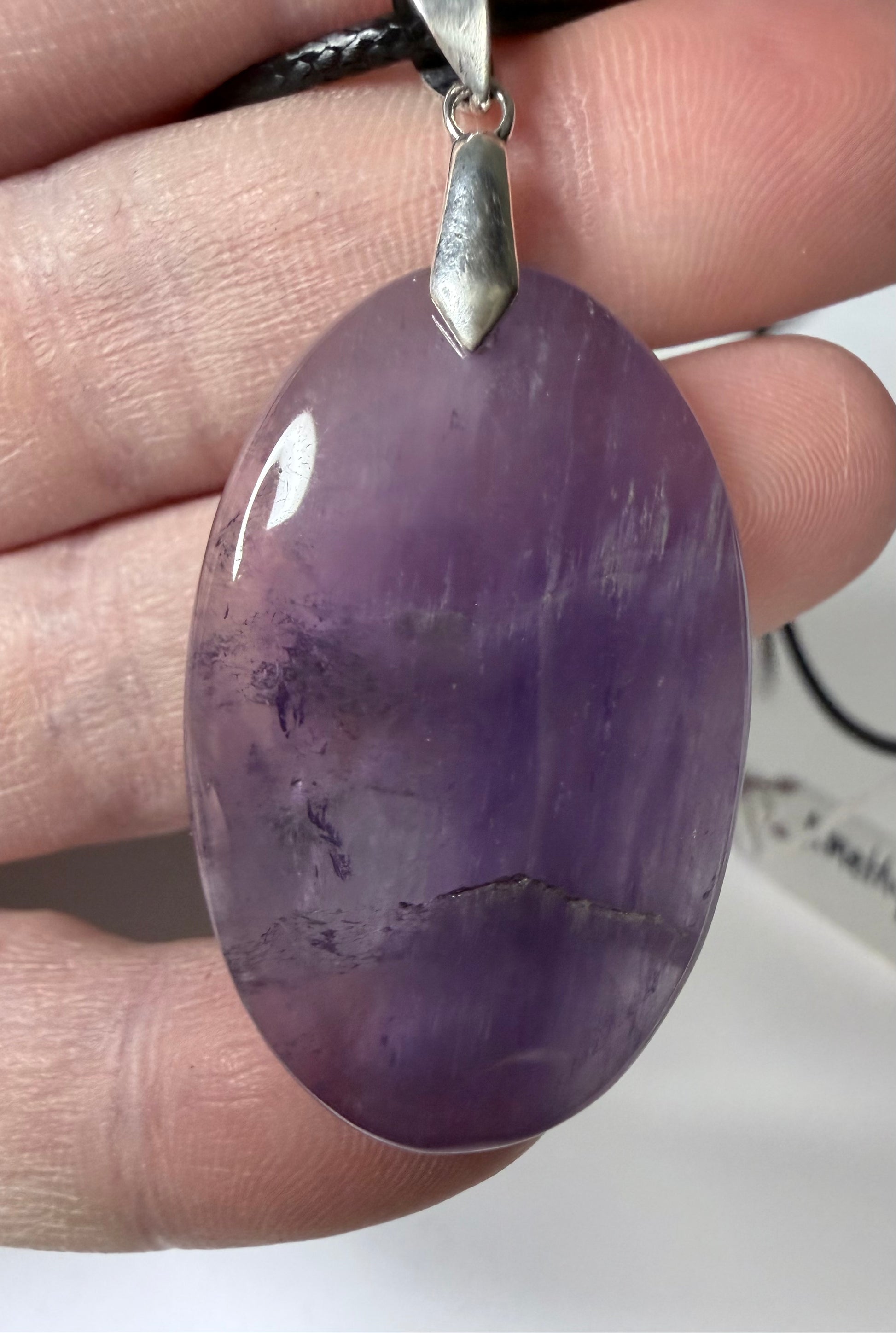 This beautiful Amethyst pendant features deep shades of purple with natural cloudy inclusions, giving every piece its own unique character. Amethyst is a calming and soothing stone, commonly used to support stress relief, emotional balance, and restful sleep.