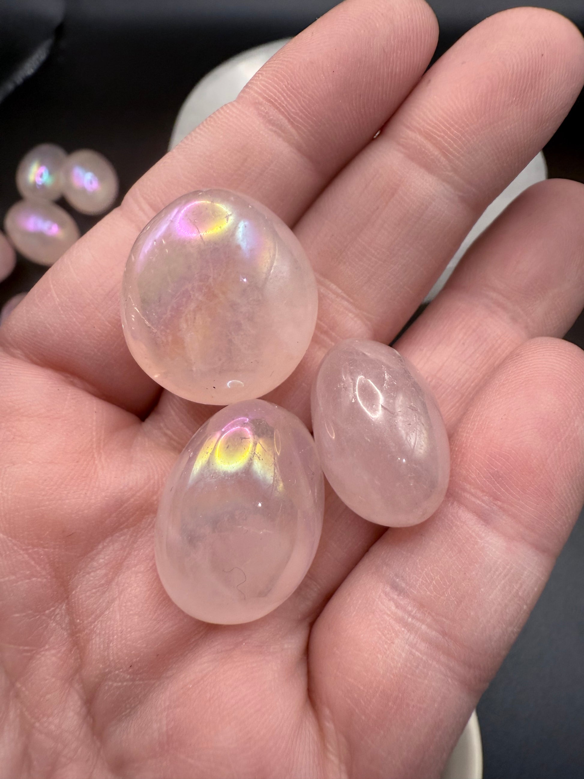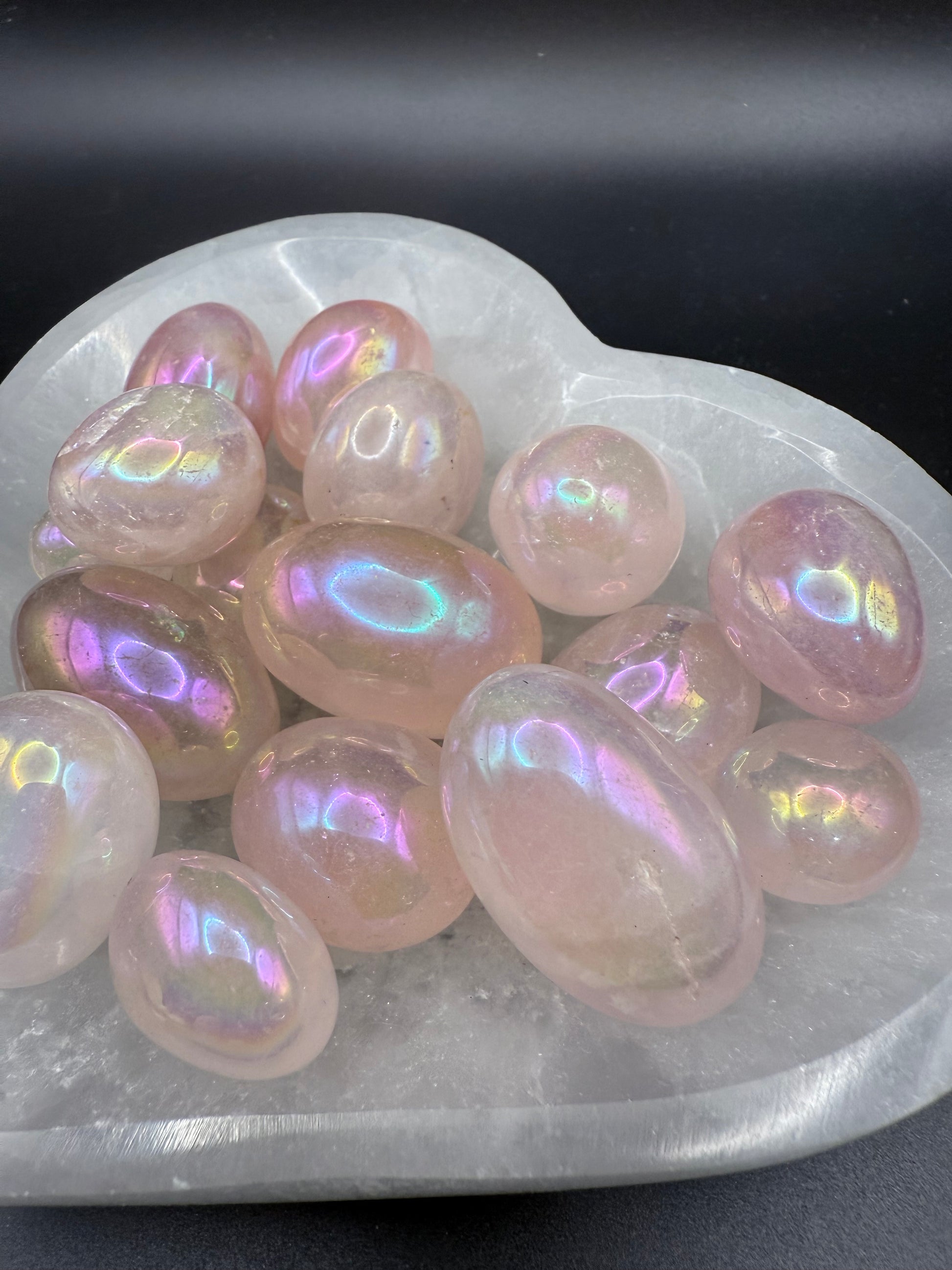 Aura Rose Quartz glows with enhanced loving energy, thanks to its shimmering iridescent finish. It’s perfect for attracting unconditional love, healing emotional wounds, and uplifting your spirit.
