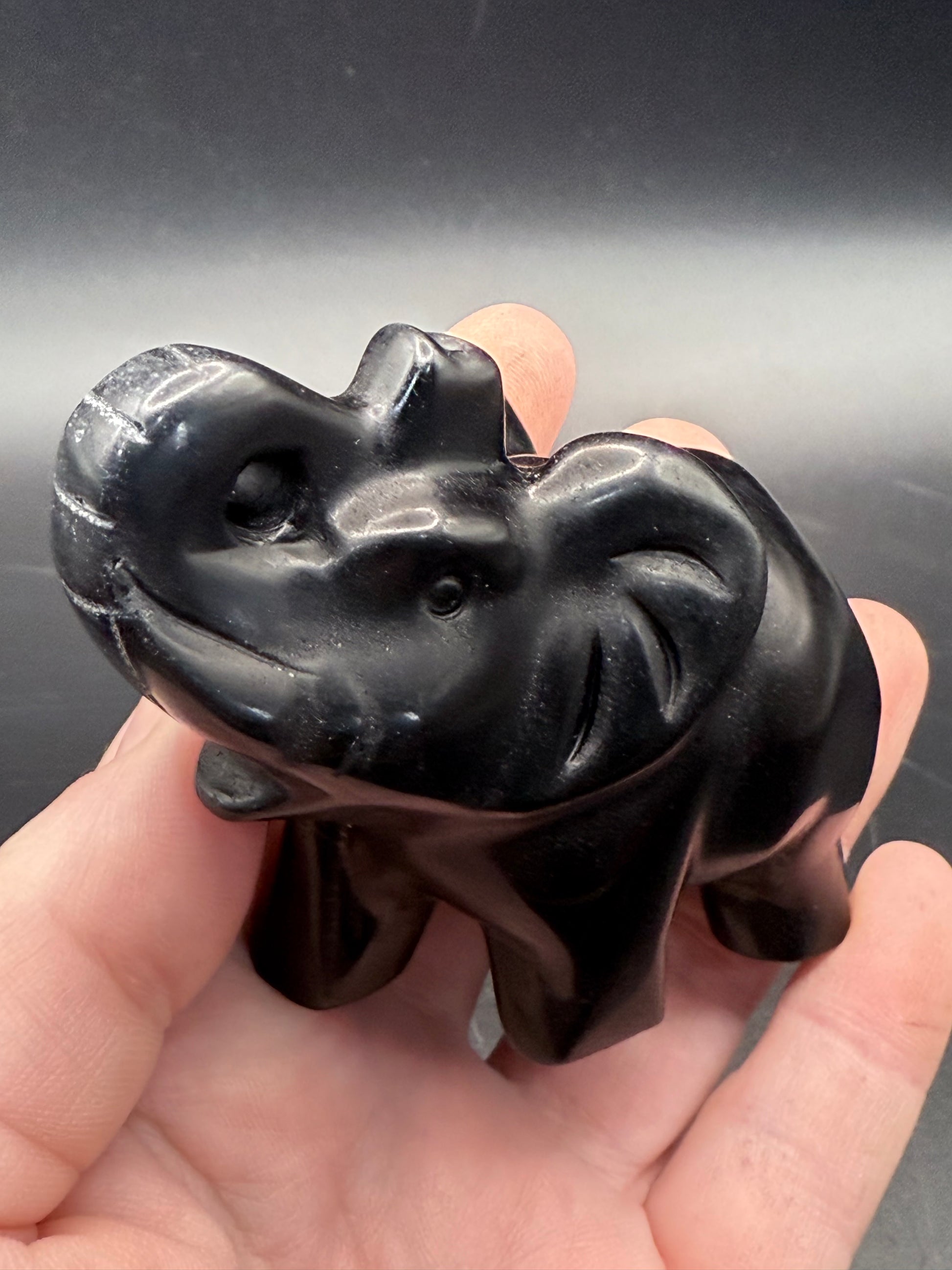 This beautifully carved Black Obsidian elephant carries the powerful symbolism of strength, protection, and wisdom. With its smooth polish and deep black sheen, this piece is both a striking display and a meaningful spiritual tool.