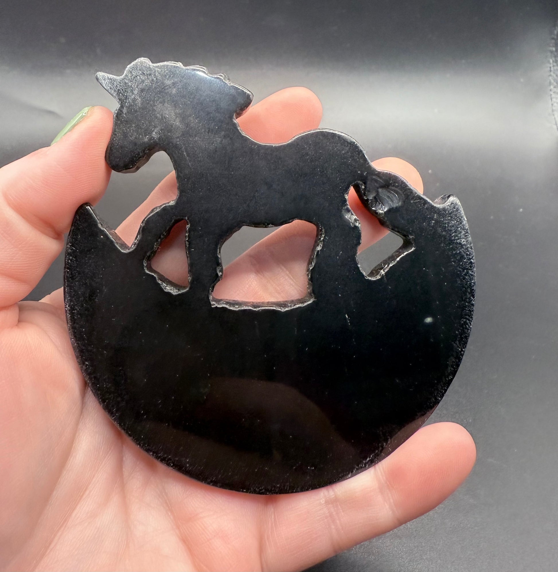 🖤✨ Black Obsidian Unicorn on Stand ✨🖤