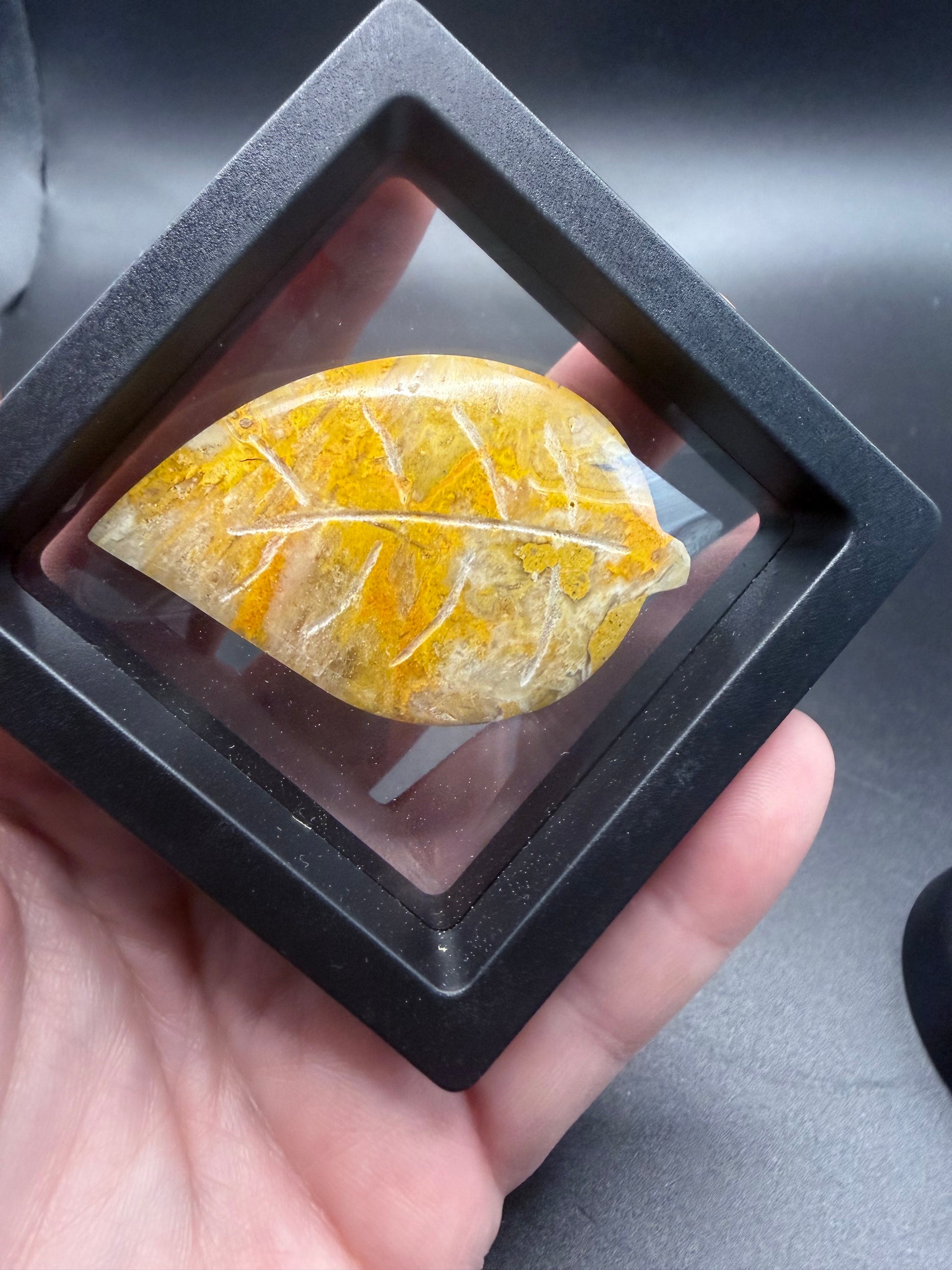 This beautiful hand-carved Bumblebee Jasper leaf showcases vibrant bands of golden yellow, orange, and black ā resembling the bold stripes of a bumblebee. The leaf shape represents growth, renewal, and transformation, making this piece both visually striking and deeply symbolic.