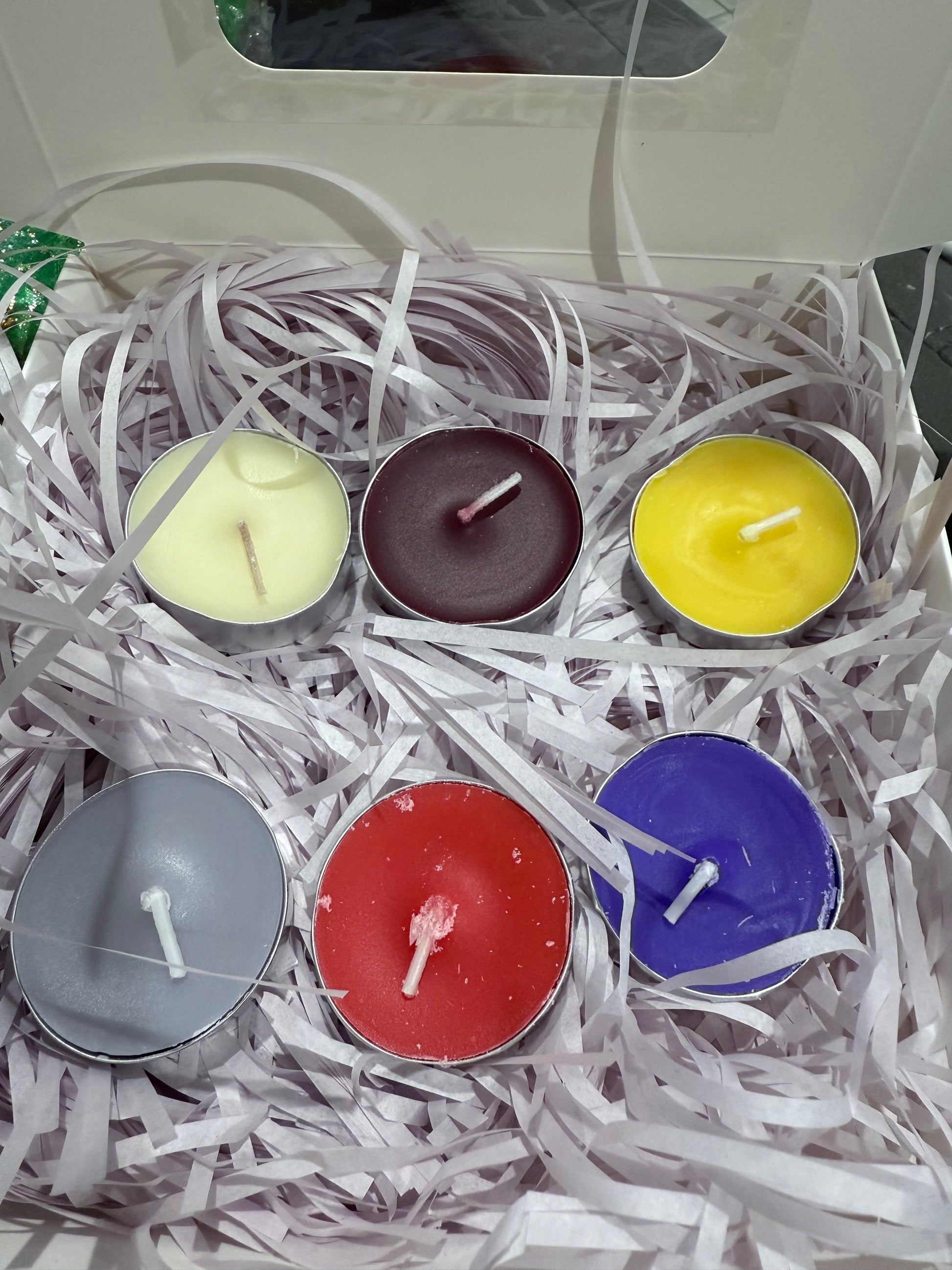 • Gorgeous inclusions & rainbows visible when candle is glowing