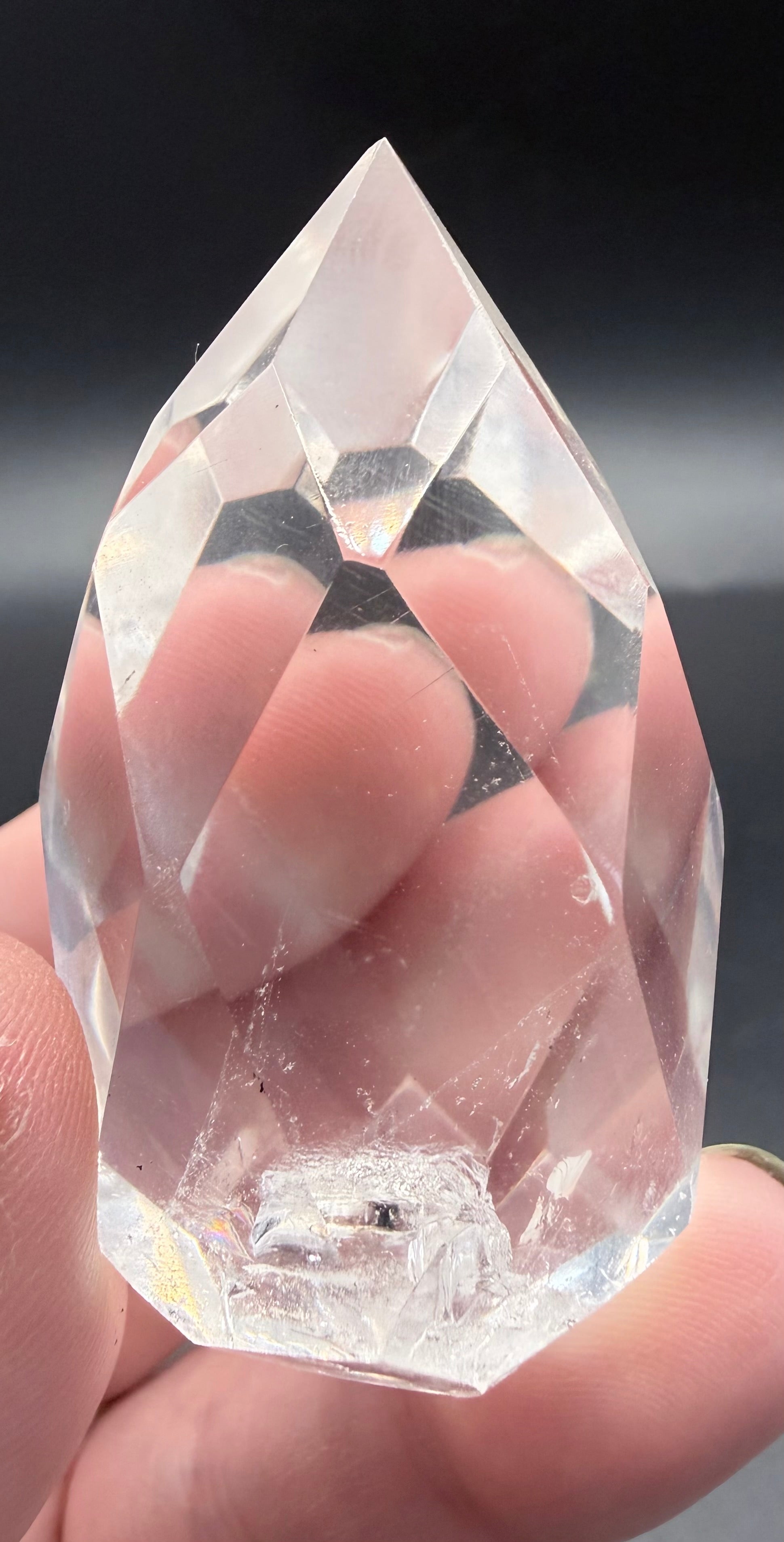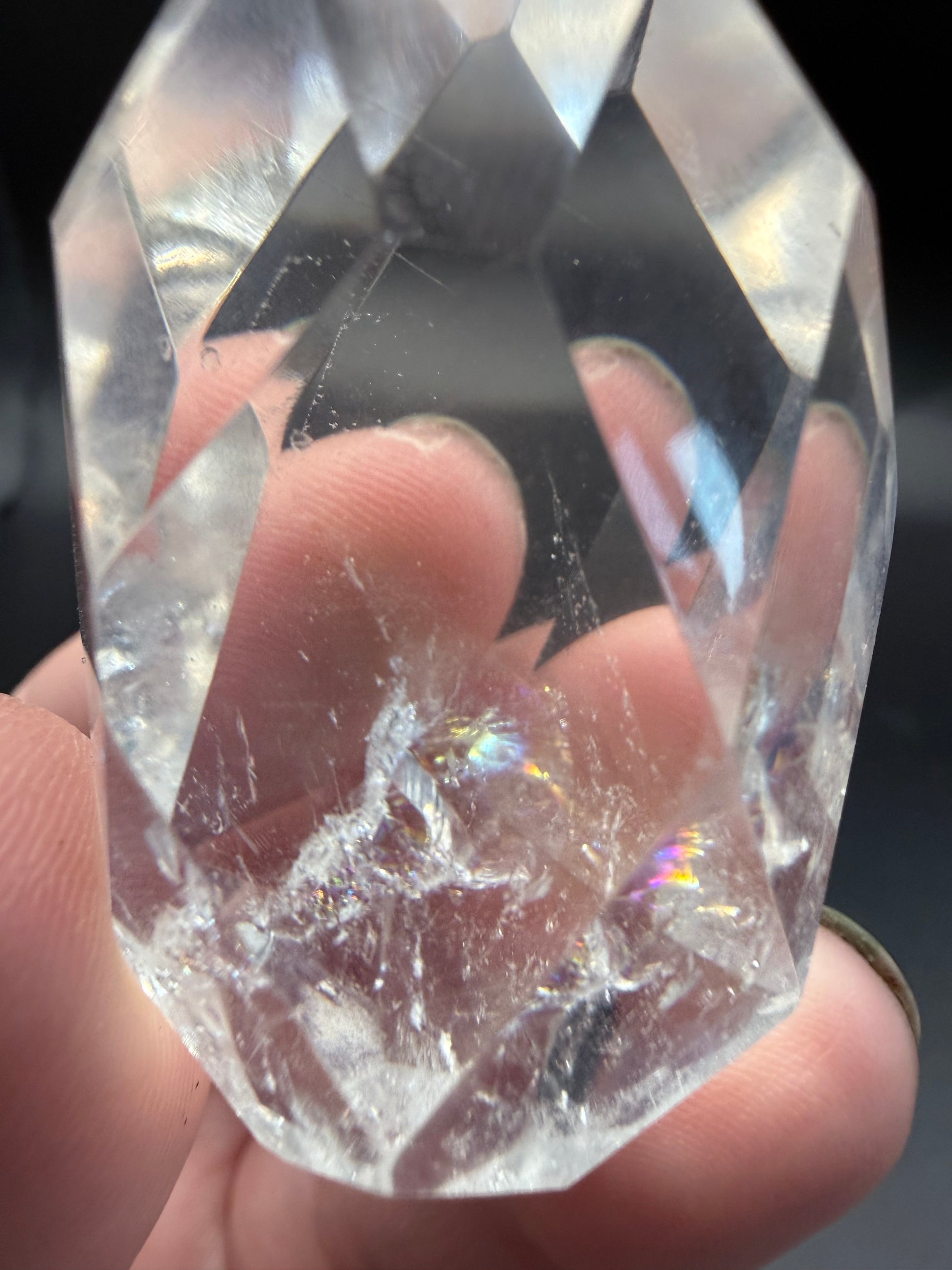 This dazzling Clear Quartz polyhedron (83g | 6 Ć 3.5 cm) radiates light and purity through its perfectly polished facets. Inside, shimmering rainbow inclusions dance and catch the light, giving this crystal an ethereal and luminous energy. š