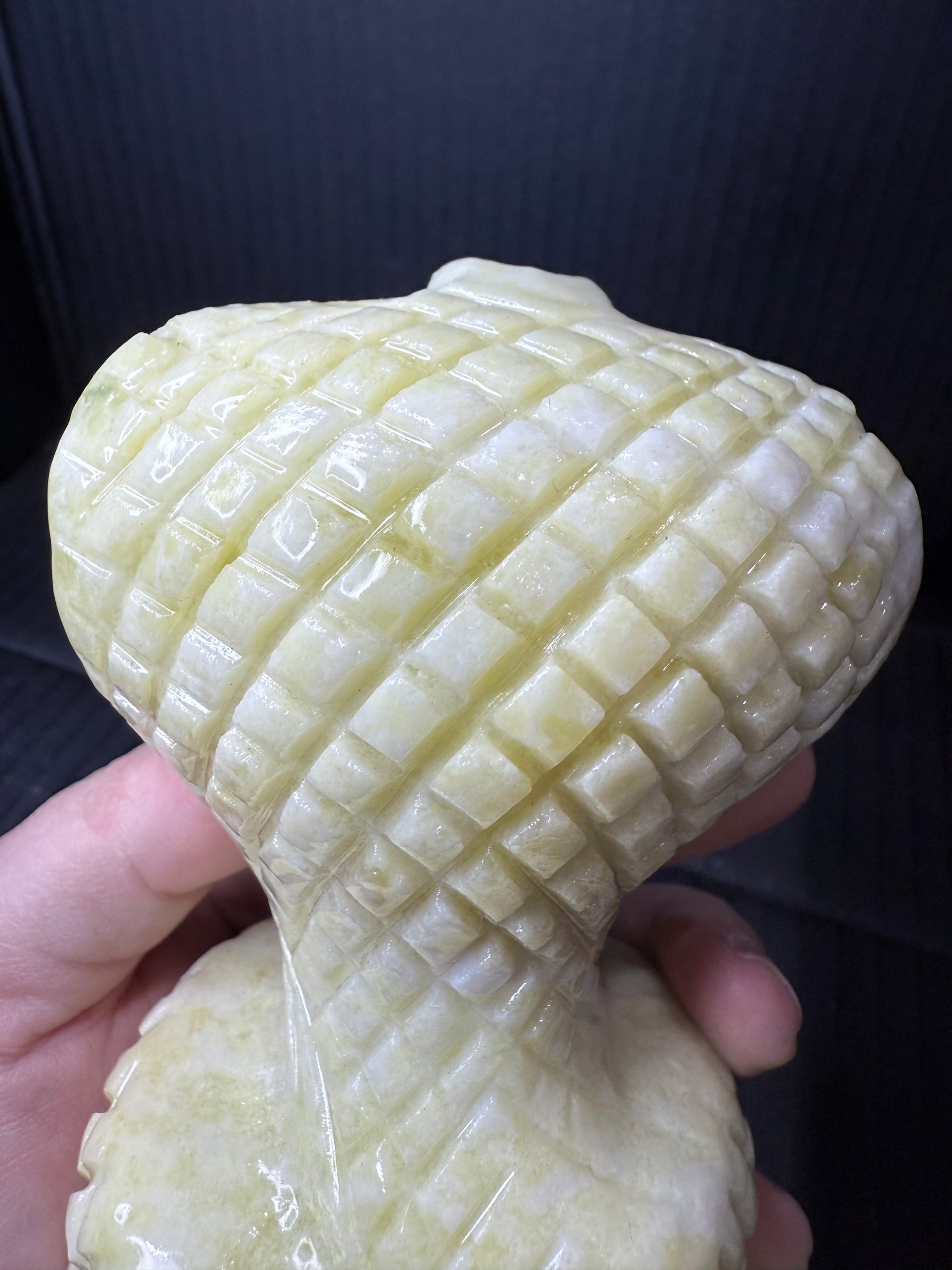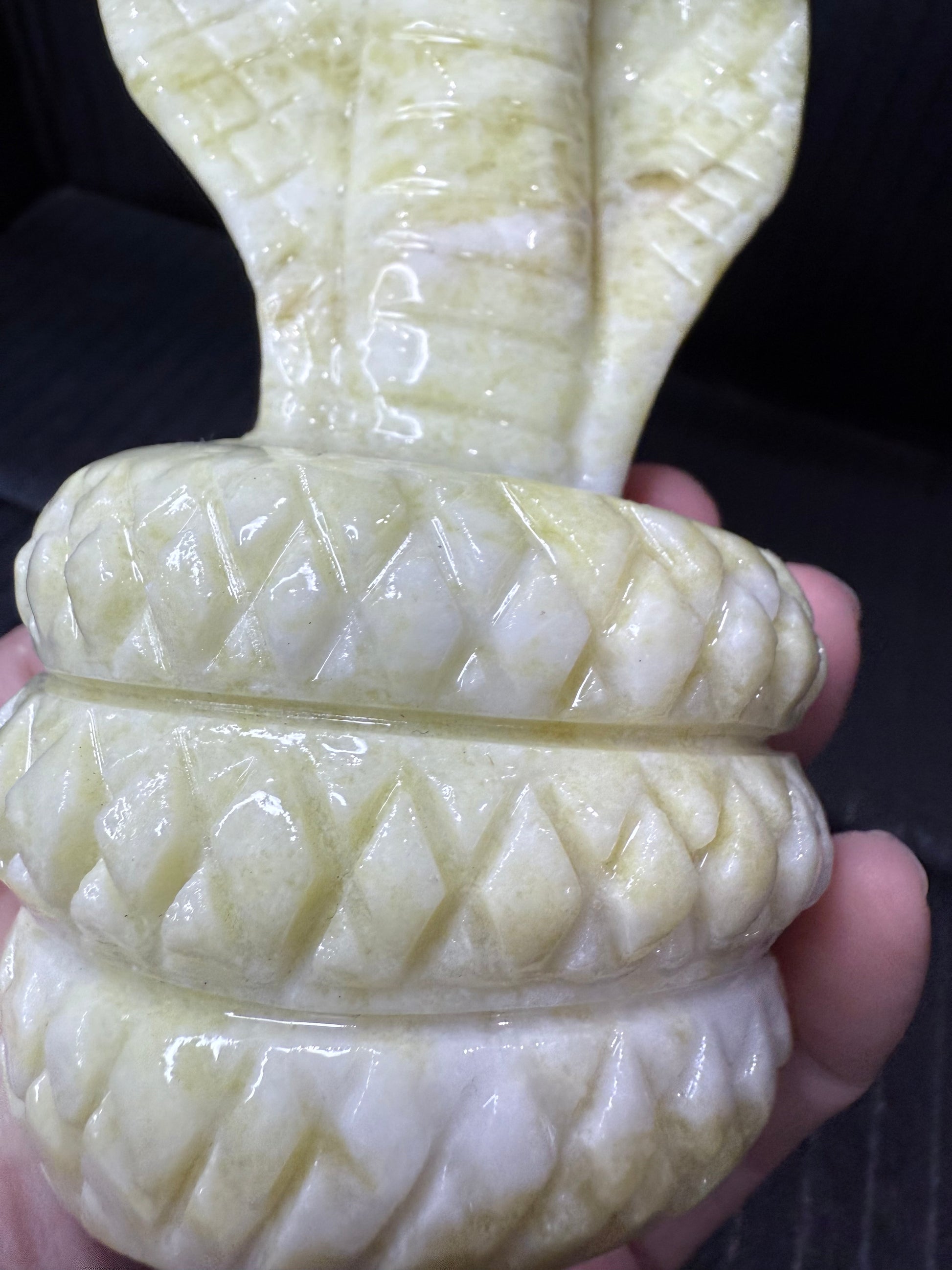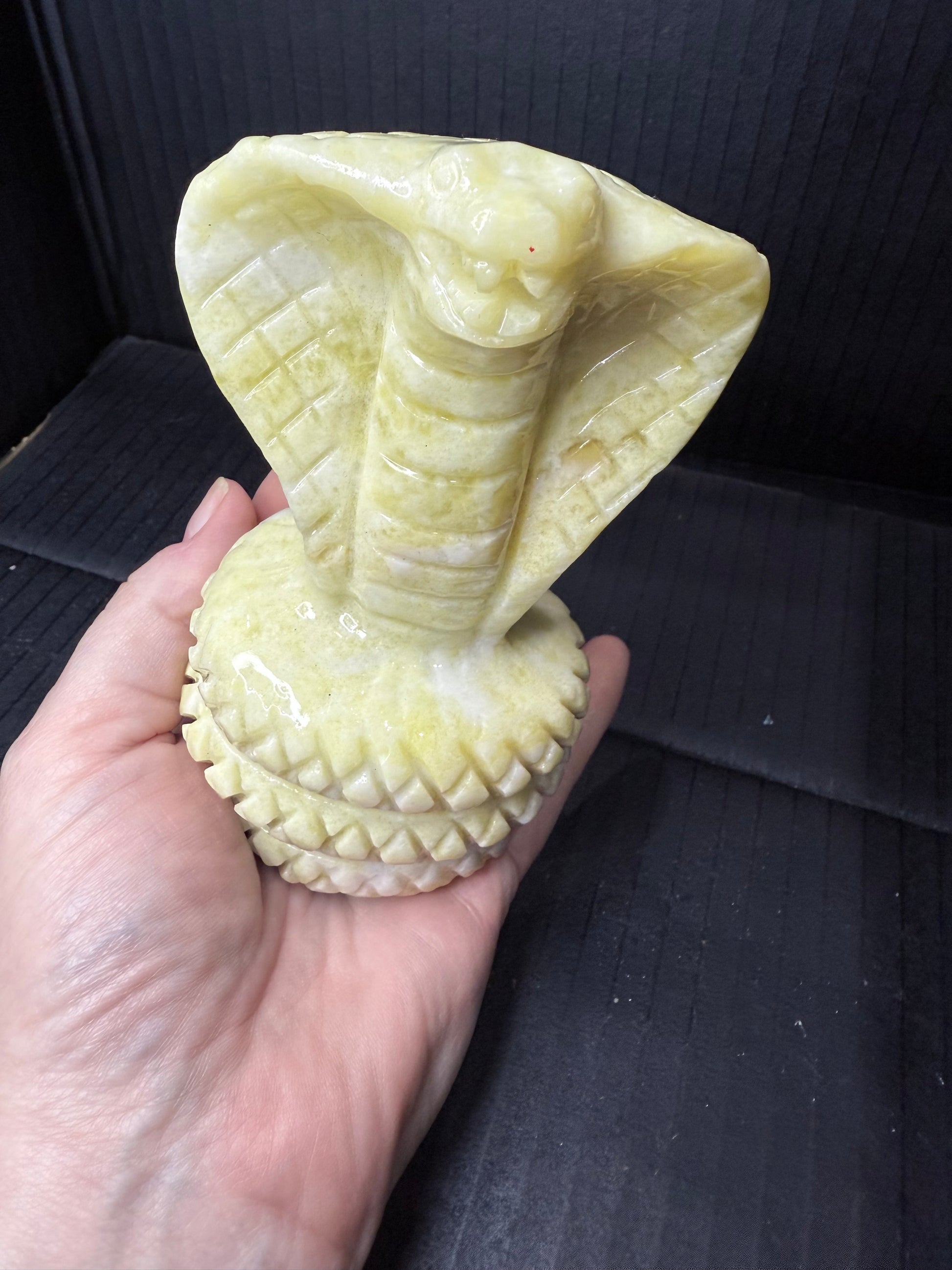 This striking Serpentine Cobra carving radiates protective and transformative energy. Serpentine is known as a stone of kundalini awakening, spiritual growth, and clearing blockages, while the cobra symbolizes power, protection, and transformation.