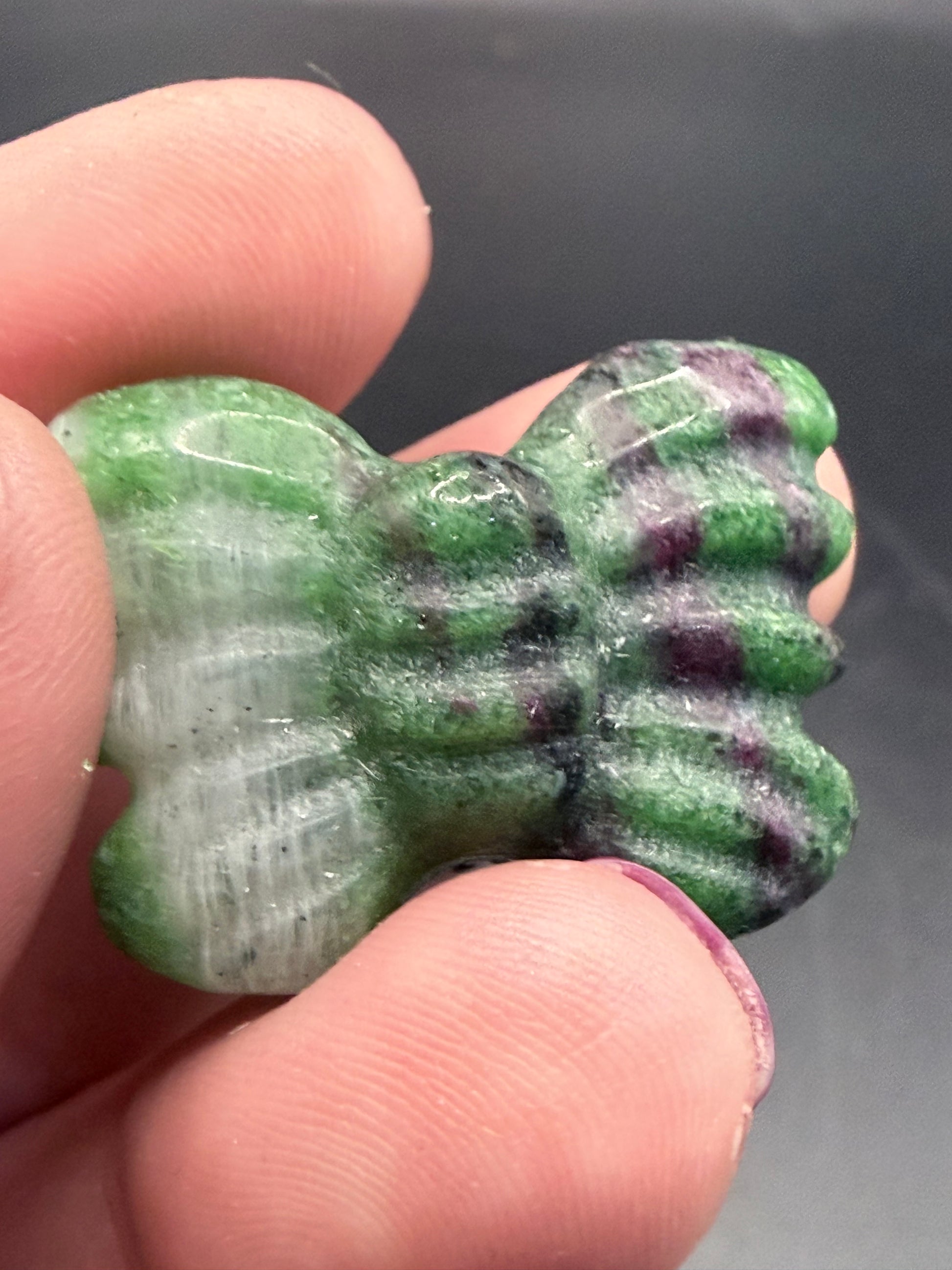 • Ruby Zoisite – Passion, vitality & heart awakening 💚❤️ (Ruby areas glow under UV light!)