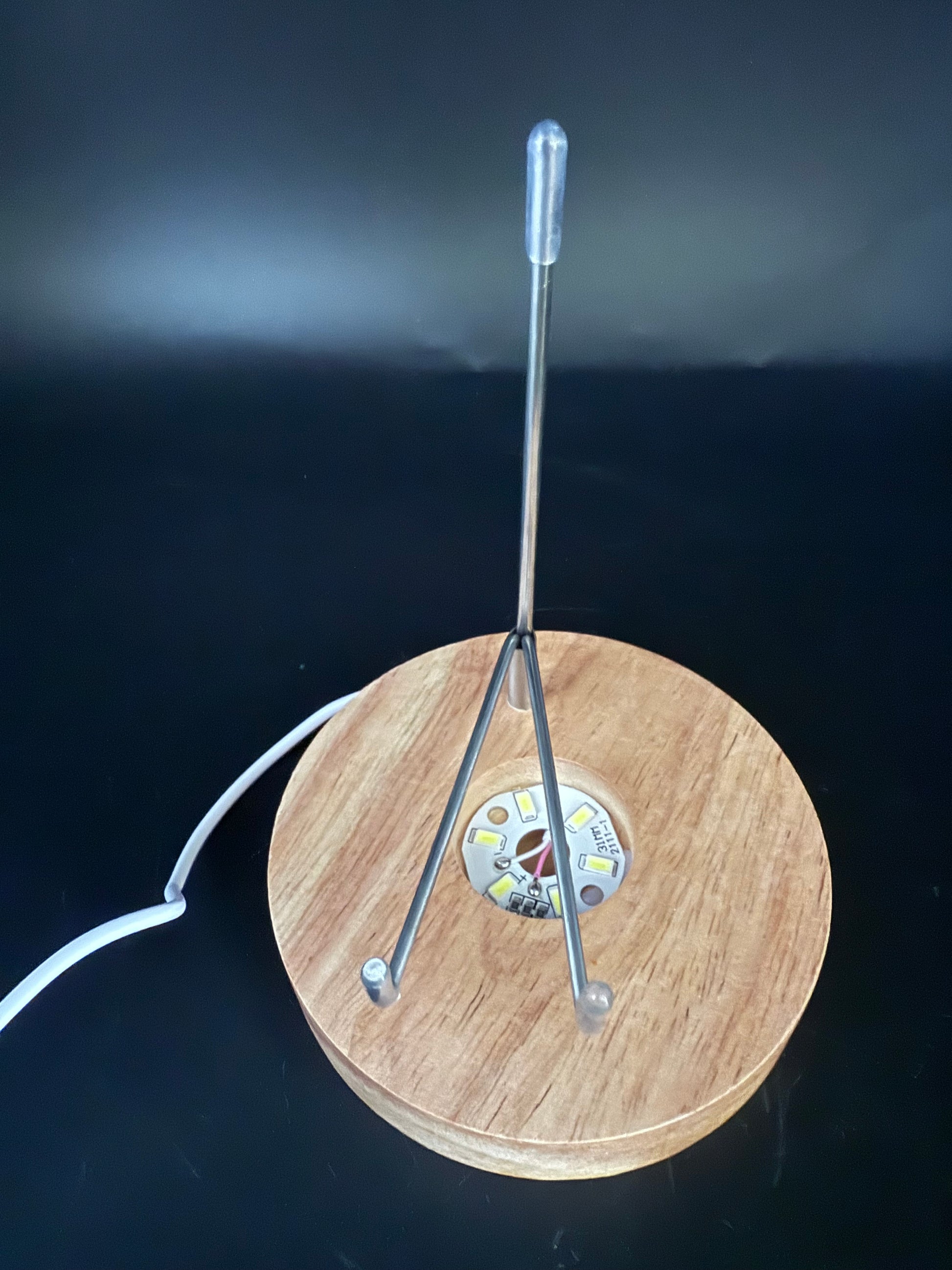 Showcase your crystals in style with this 10cm wooden crystal display base, complete with an integrated LED light and upright stand. The warm LED light enhances the natural colors, rainbows, and inclusions within your crystals, while the metal stand securely holds carvings, plates, or spheres above the light for a glowing, eye-catching display.