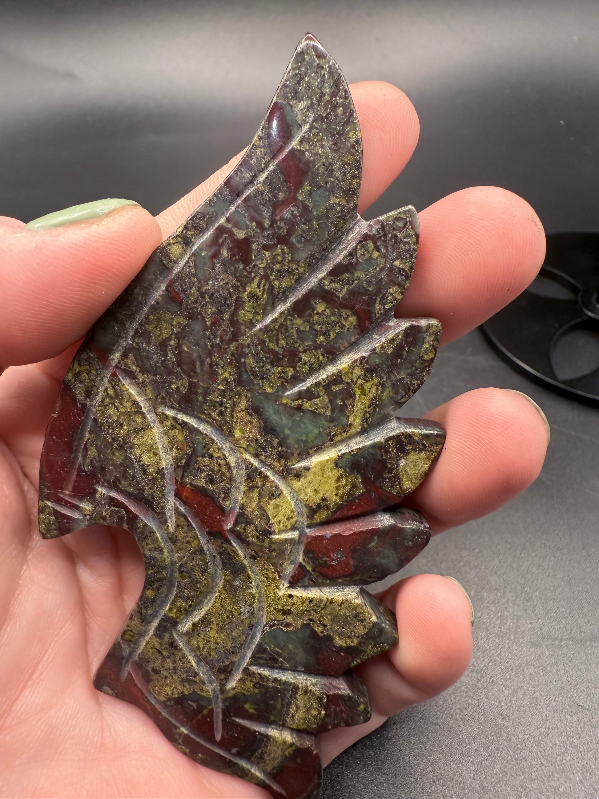 - Dragon’s Blood Jasper Wings: Deep reds, forest greens, and golden veins symbolizing courage, vitality, and strength.