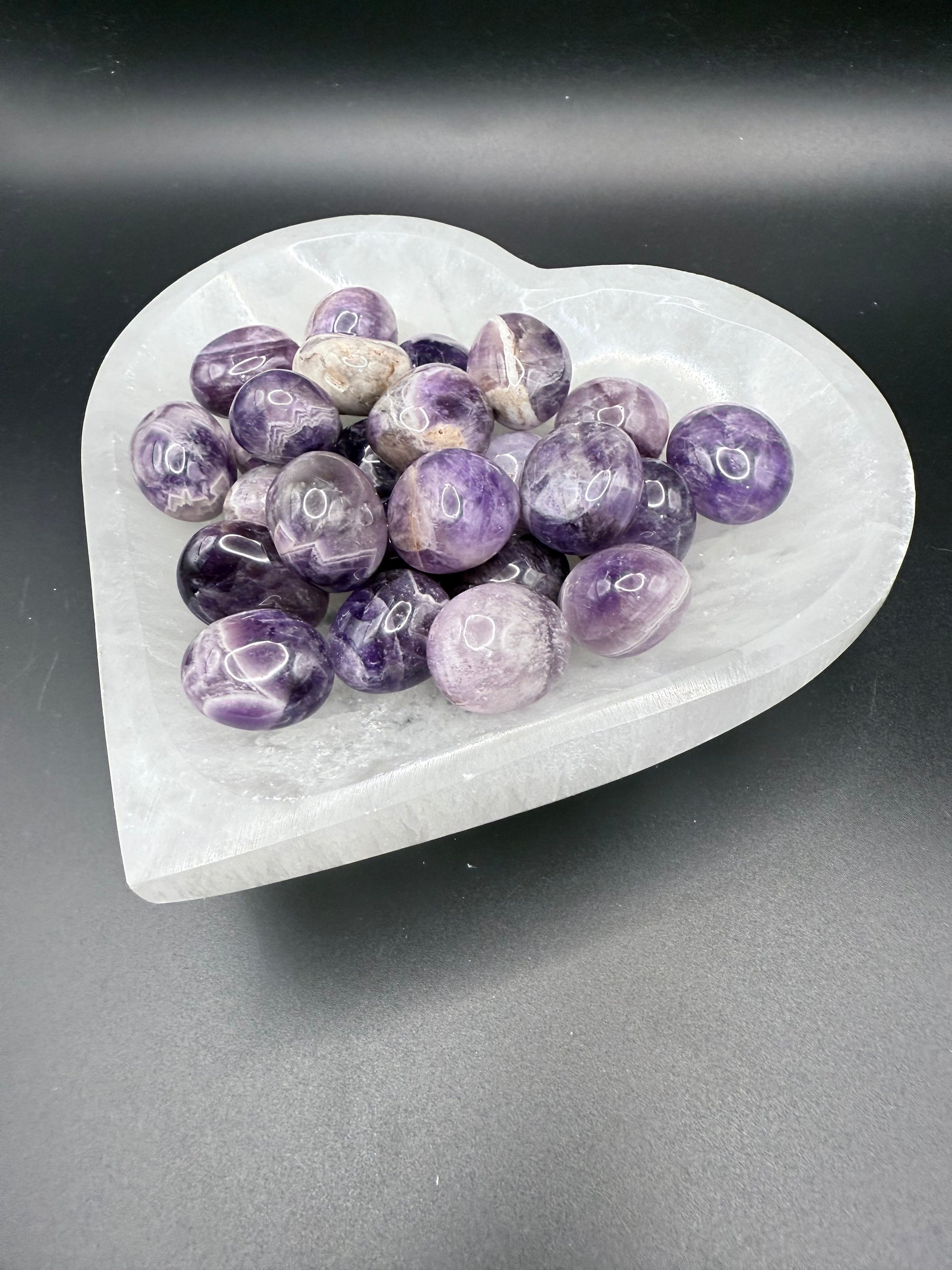 Also known as Chevron Amethyst, these dreamy purple and white beauties combine the calming energy of amethyst with the cleansing power of quartz. A must-have for spiritual growth and protection!