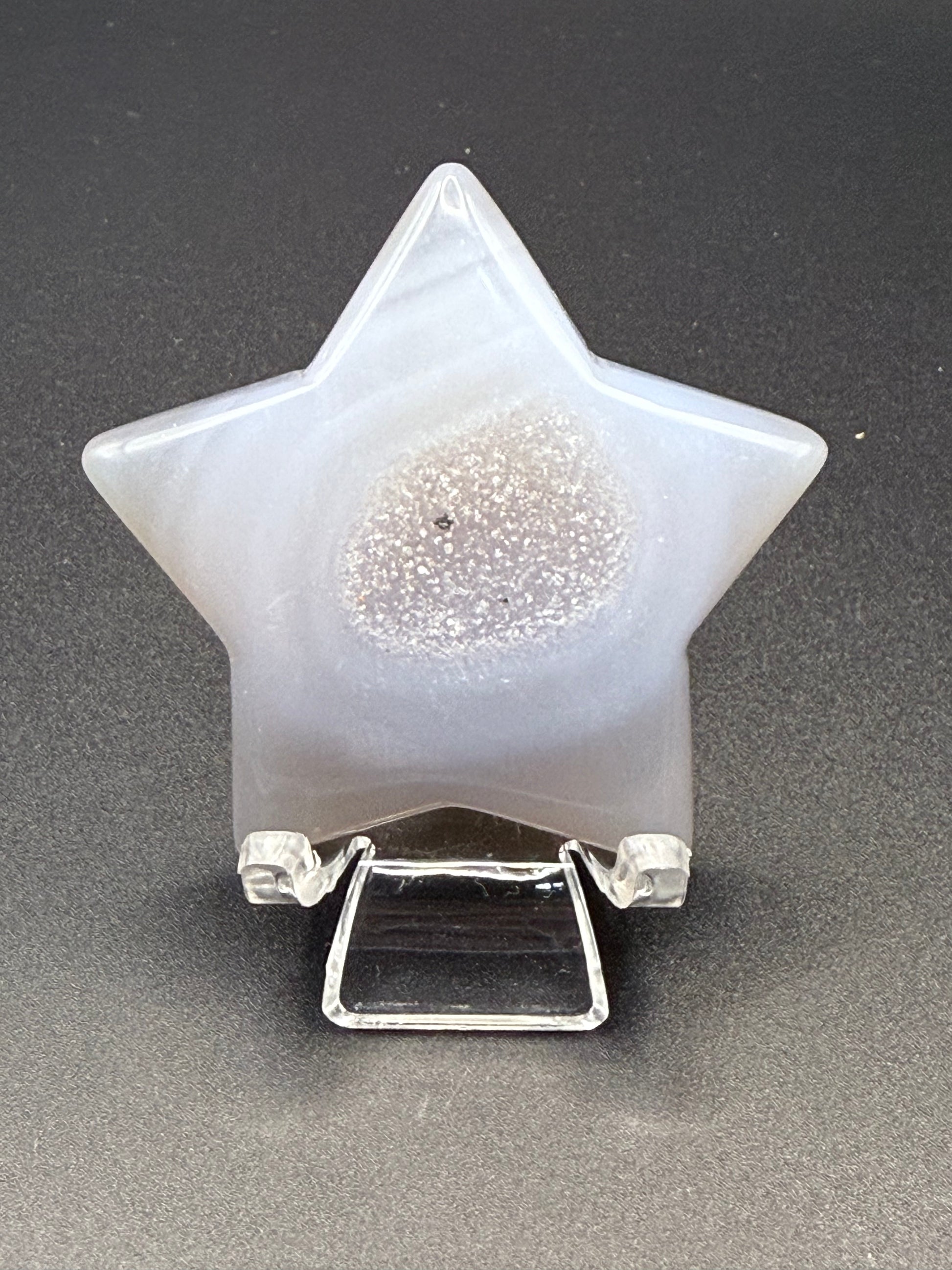 This sparkling Druzy Agate star is a true gem—literally! With its natural crystal clusters and soothing energy, Druzy Agate is believed to promote relaxation, balance, and spiritual growth. The star shape adds a celestial touch, making it perfect for your altar, crystal grid, or as a magical décor piece.