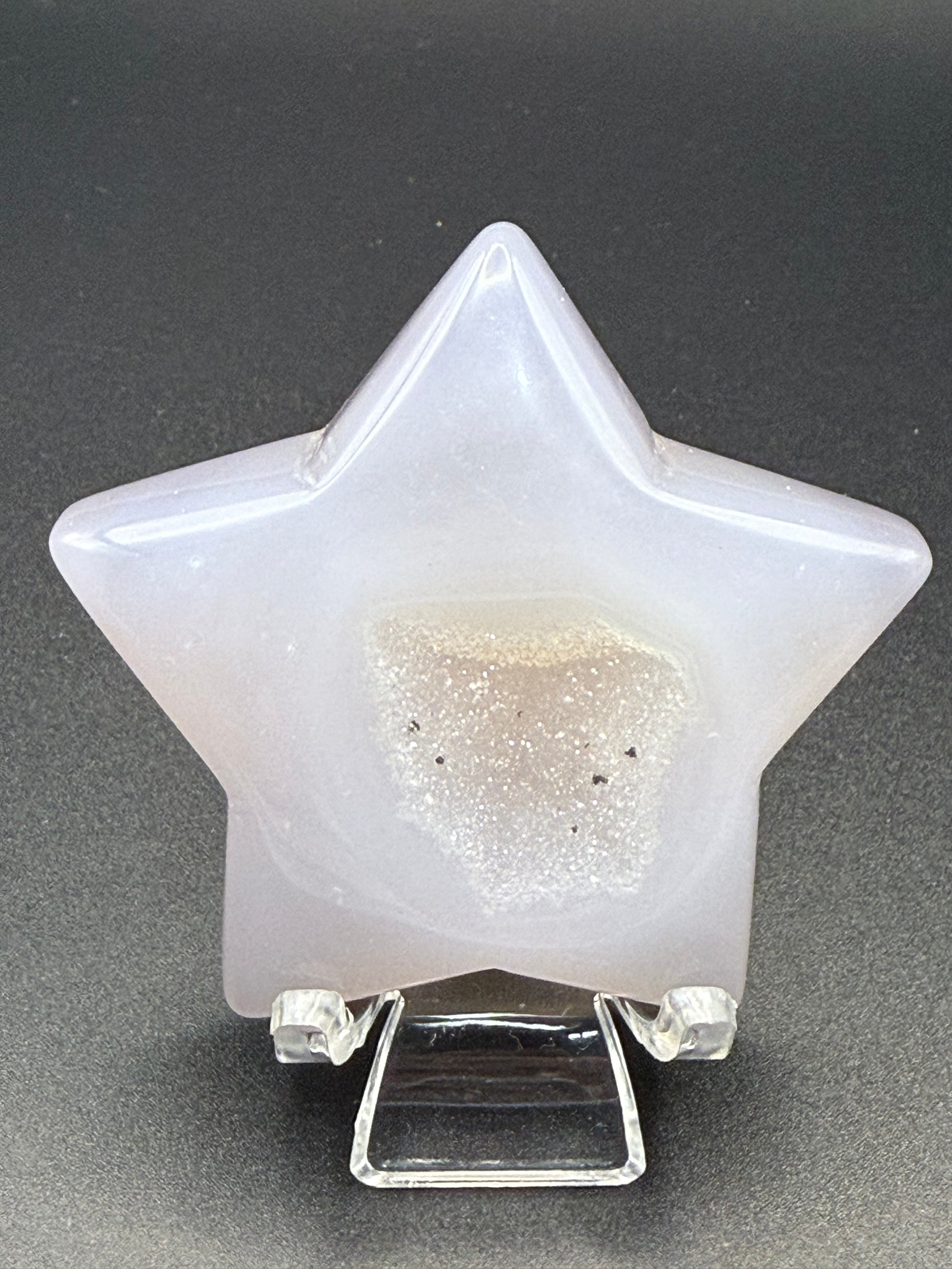 This sparkling Druzy Agate star is a true gem—literally! With its natural crystal clusters and soothing energy, Druzy Agate is believed to promote relaxation, balance, and spiritual growth. The star shape adds a celestial touch, making it perfect for your altar, crystal grid, or as a magical décor piece.