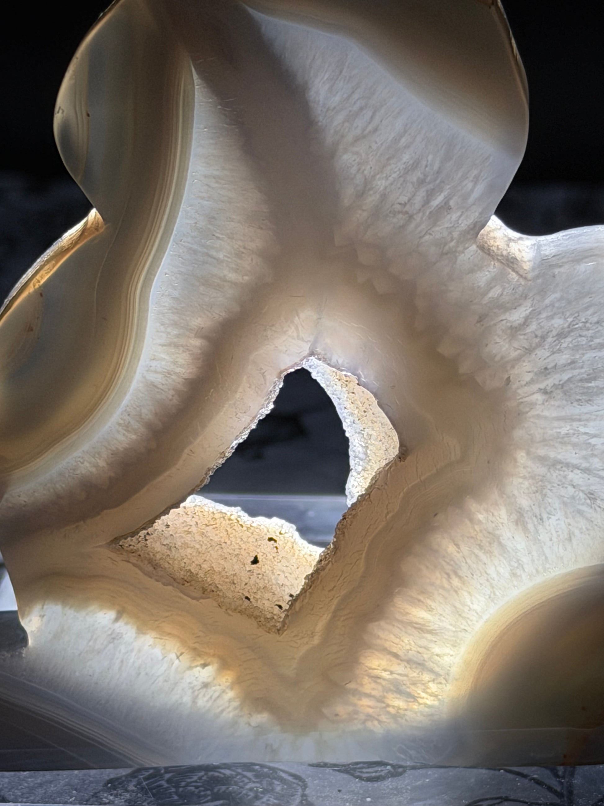 Agate is loved for its grounding, calming and stabilising energy, while druzy is often linked to uplifting vibes and gentle cleansing—a beautiful combination in one statement carving.