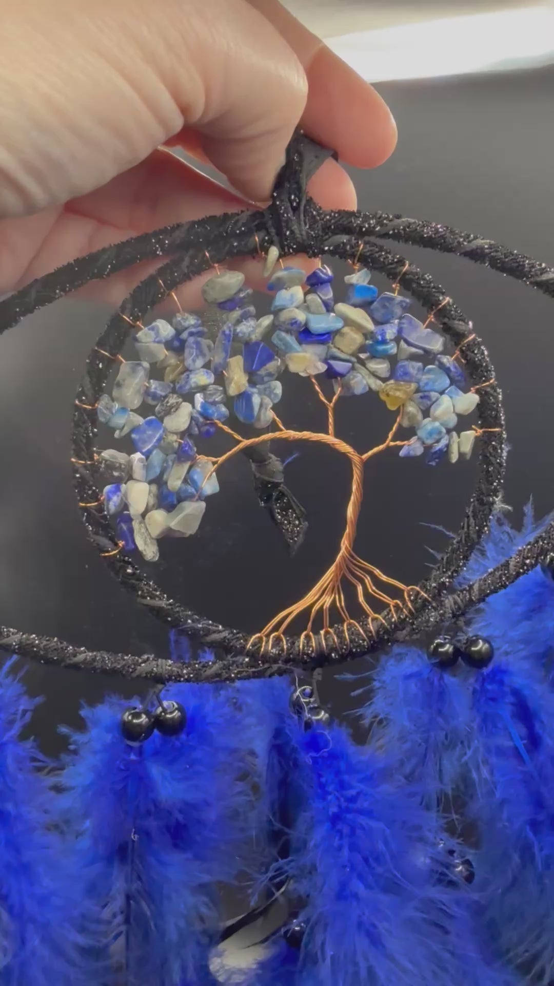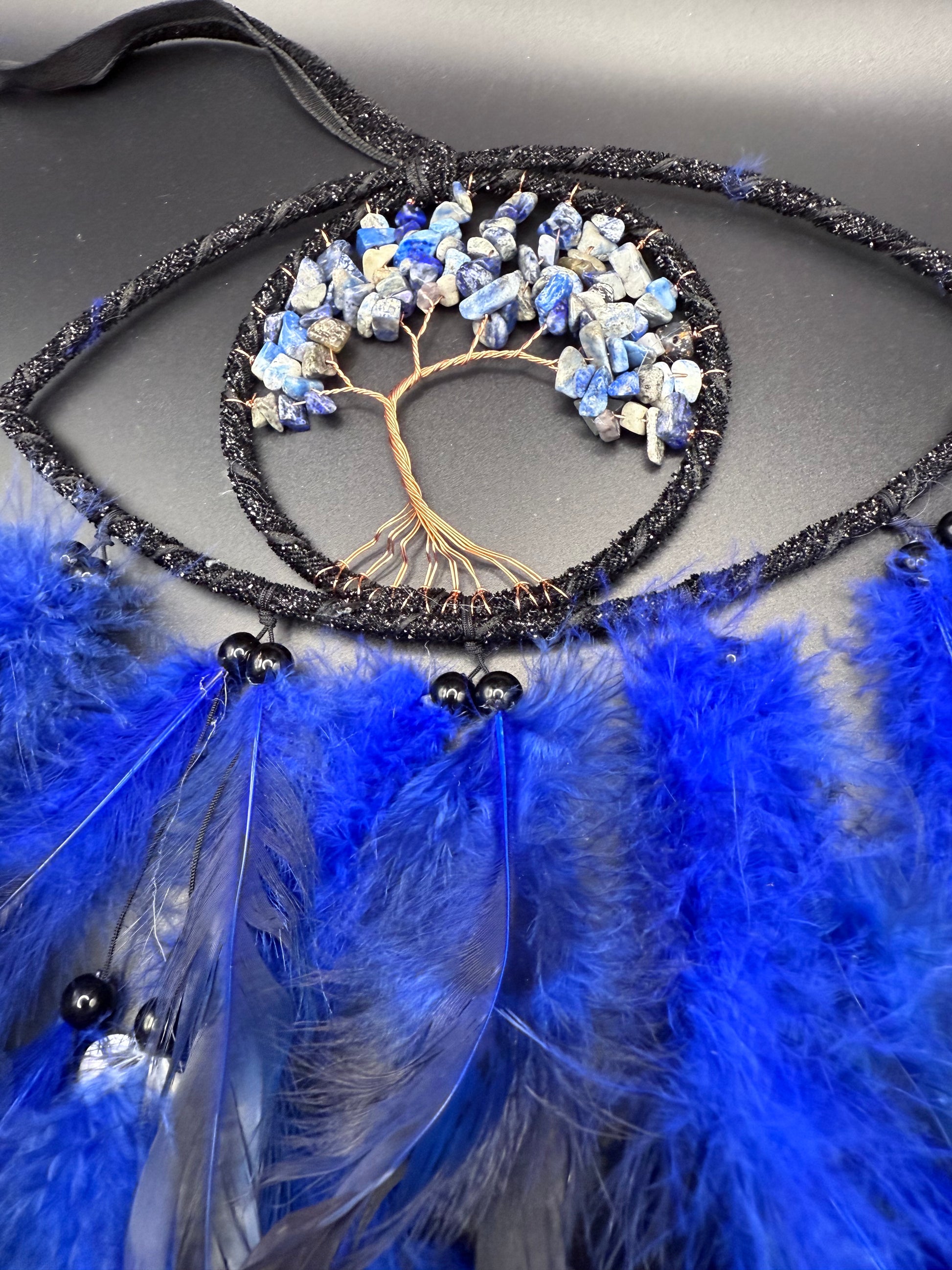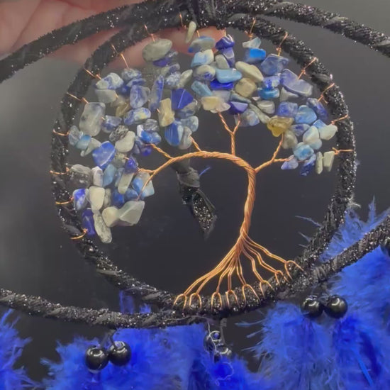 šš Blue & Black Dreamcatcher with Lapis Lazuli Tree of Life ā 35cm šš