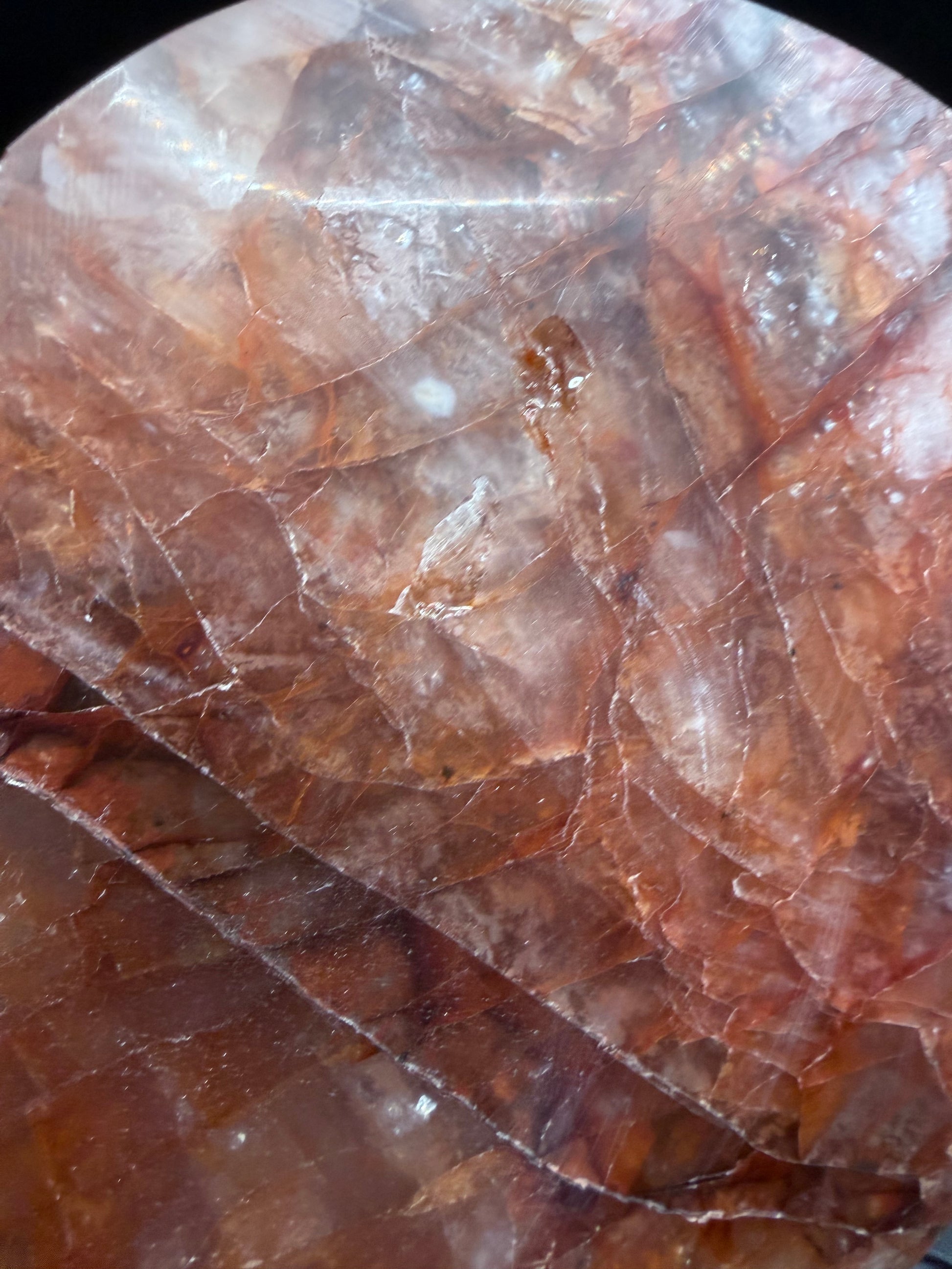 - Natural inclusions, internal fractures and colour variations are normal and part of Fire Quartz’s beauty