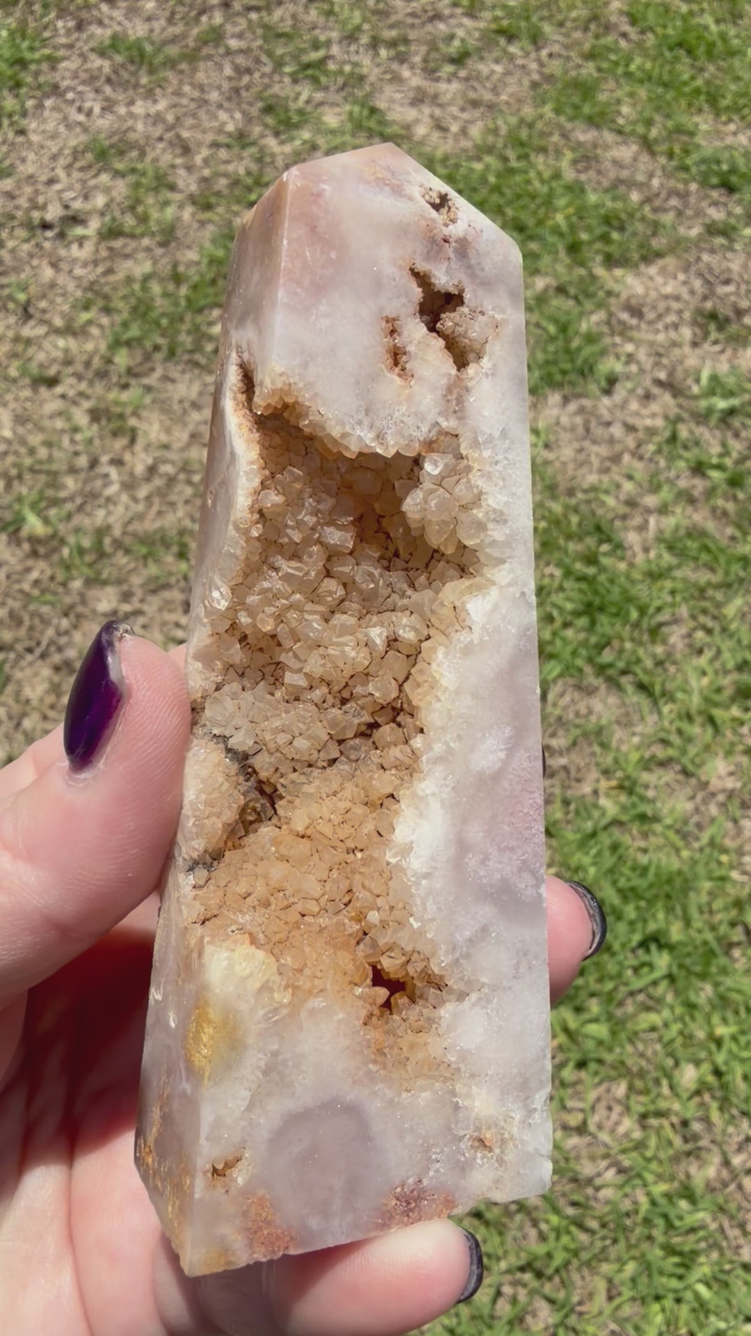 - Finish: Polished tower with natural druzy pockets