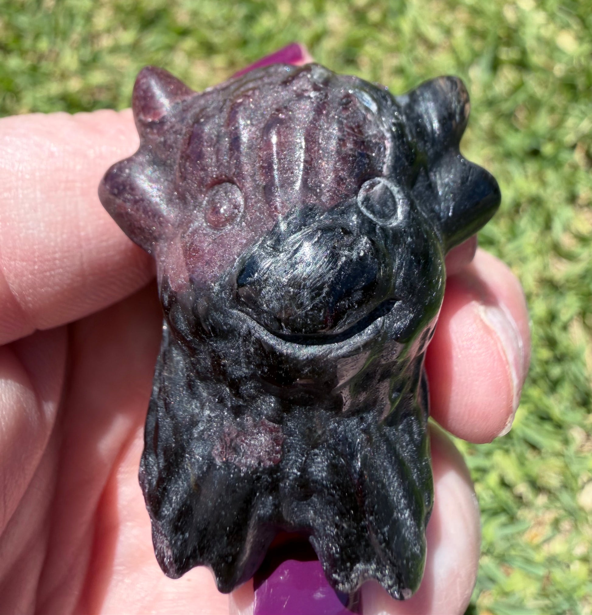 Carved from Garnet, the crystal of strength, grounding, courage and passion. Garnet helps rebuild confidence, protect your energy, and re-ignite your inner spark when you’ve been feeling tired or weighed down.