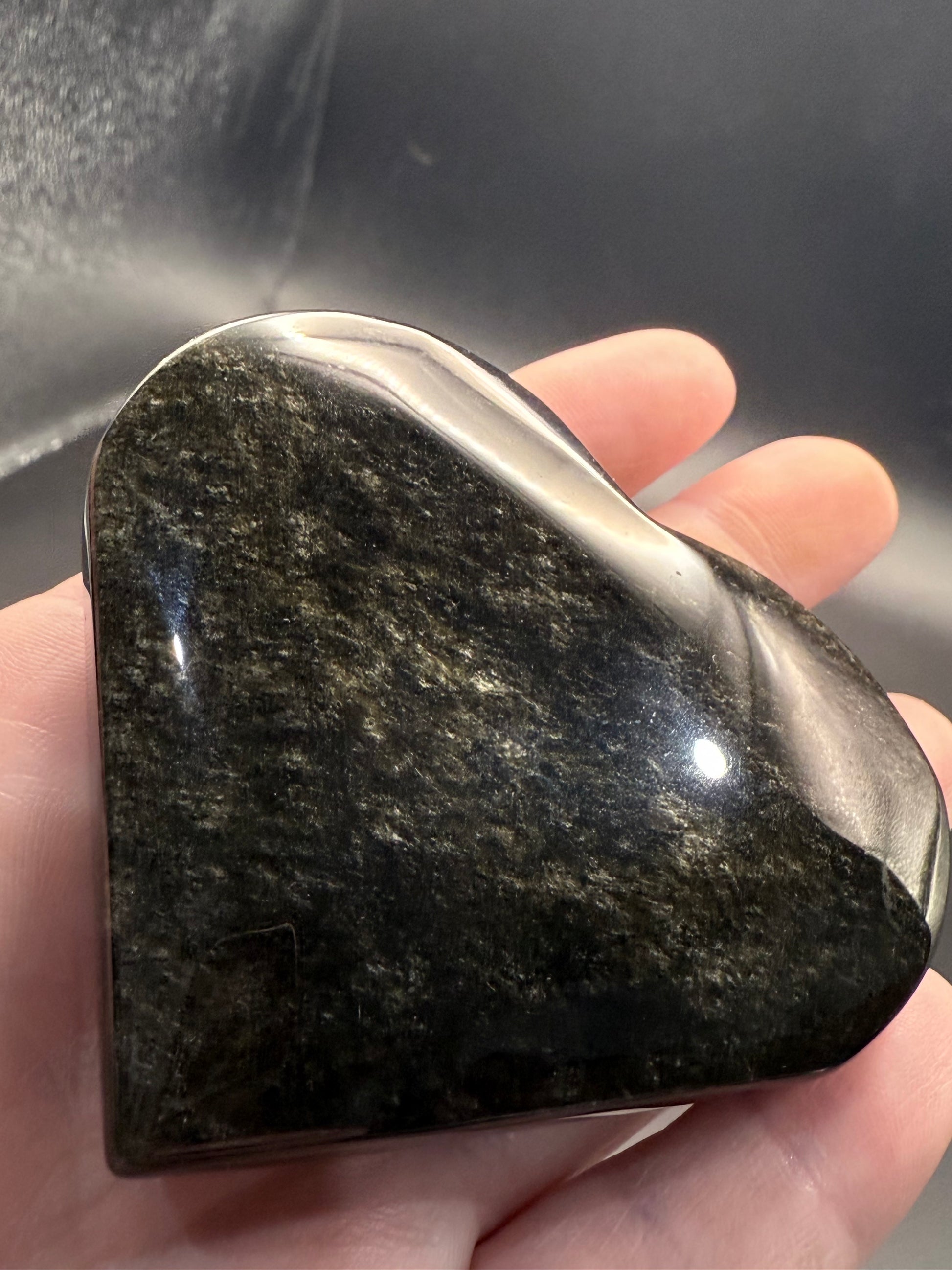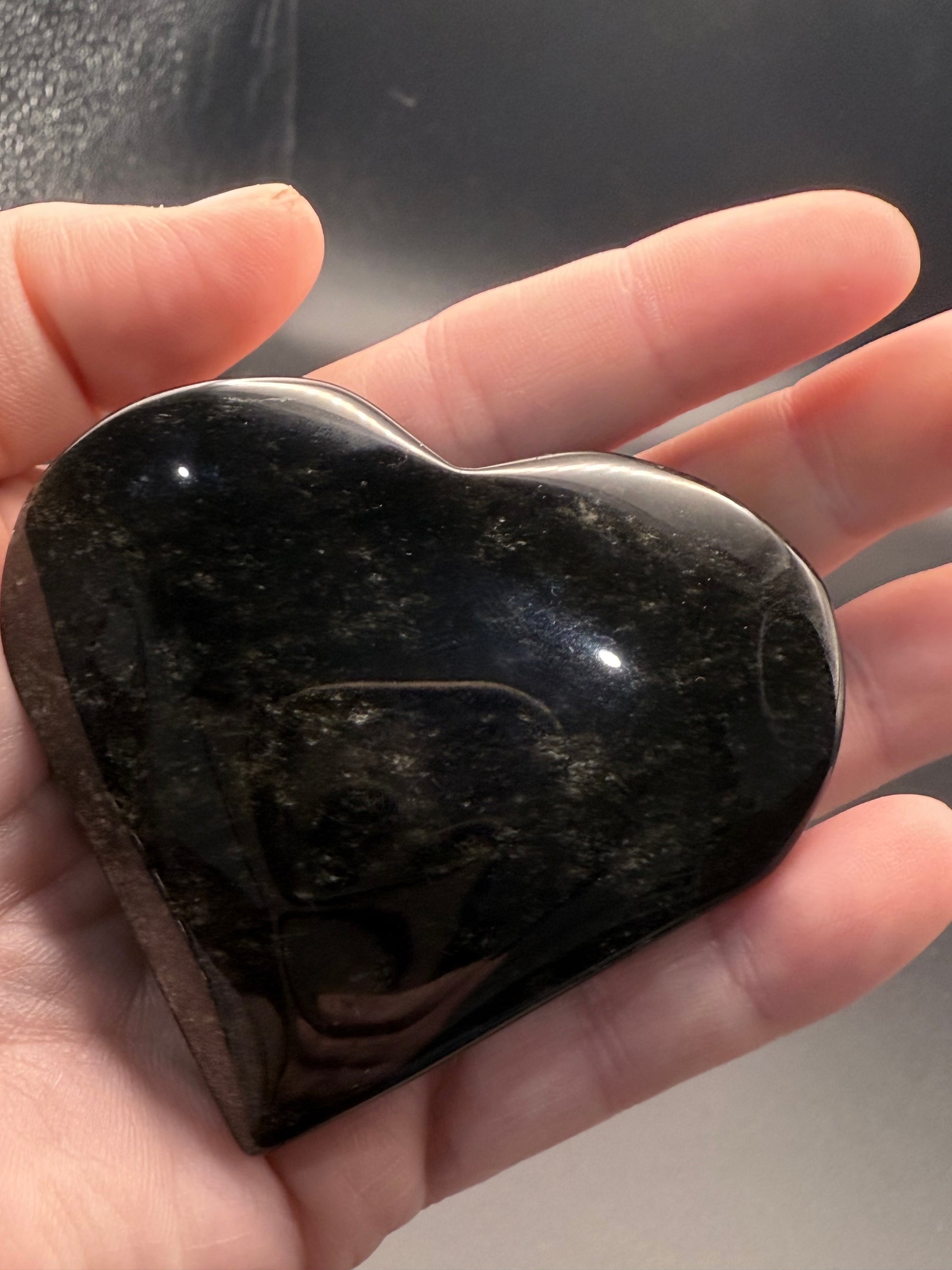This stunning heart-shaped Gold Sheen Obsidian showcases a mesmerizing golden shimmer that dances across its deep black surface. A powerful protective stone, it’s known for shielding against negativity and revealing hidden truths.