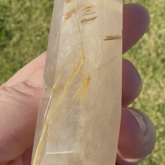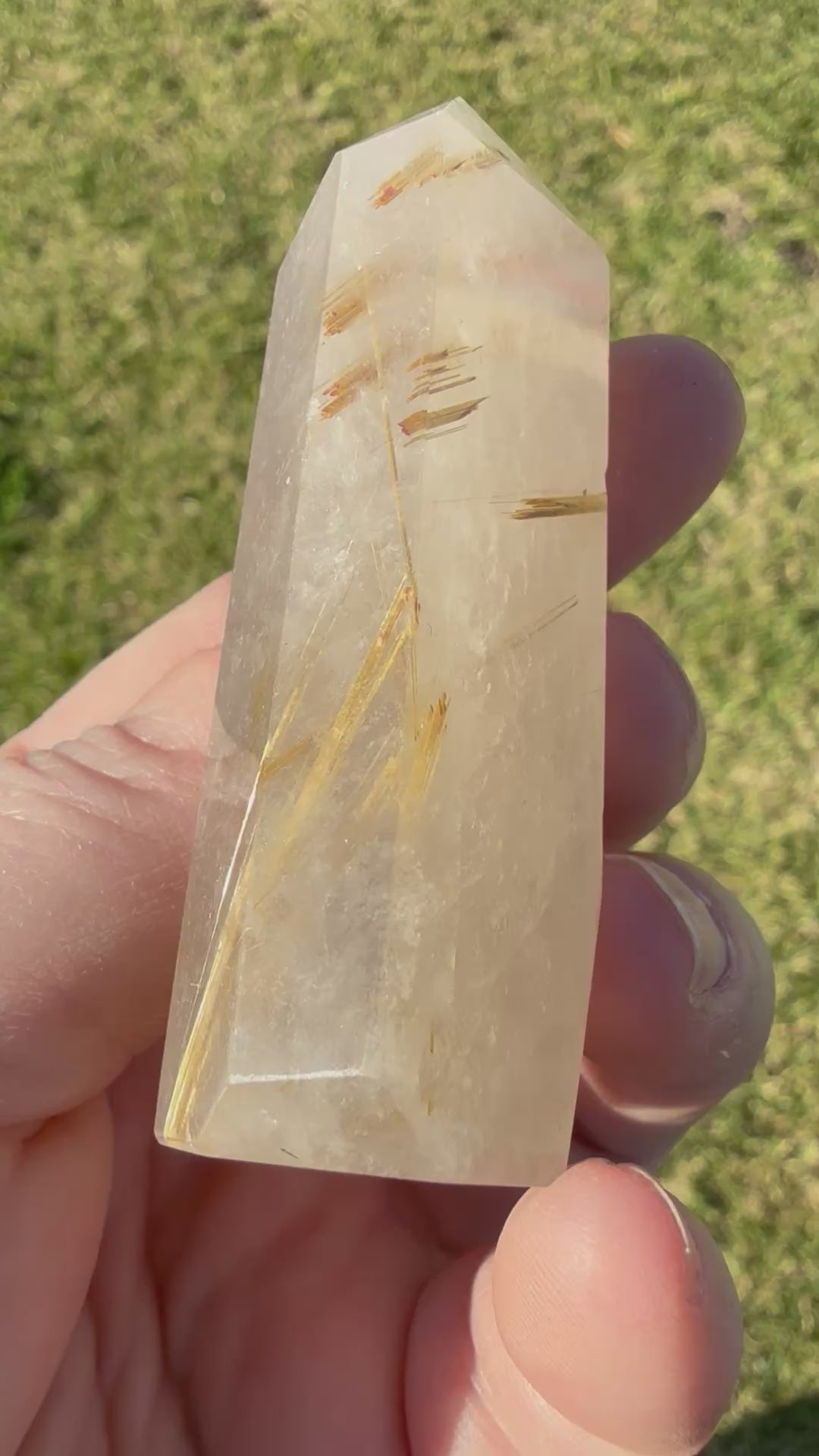 These stunning polished Golden Rutile Quartz towers sparkle with golden needle-like inclusions (known as “Venus Hair”), creating a truly unique and powerful energy piece for your collection.