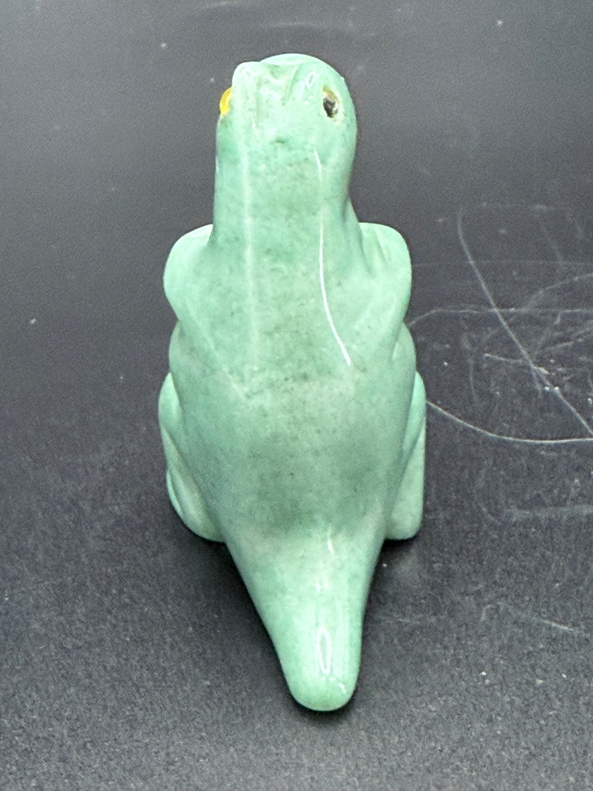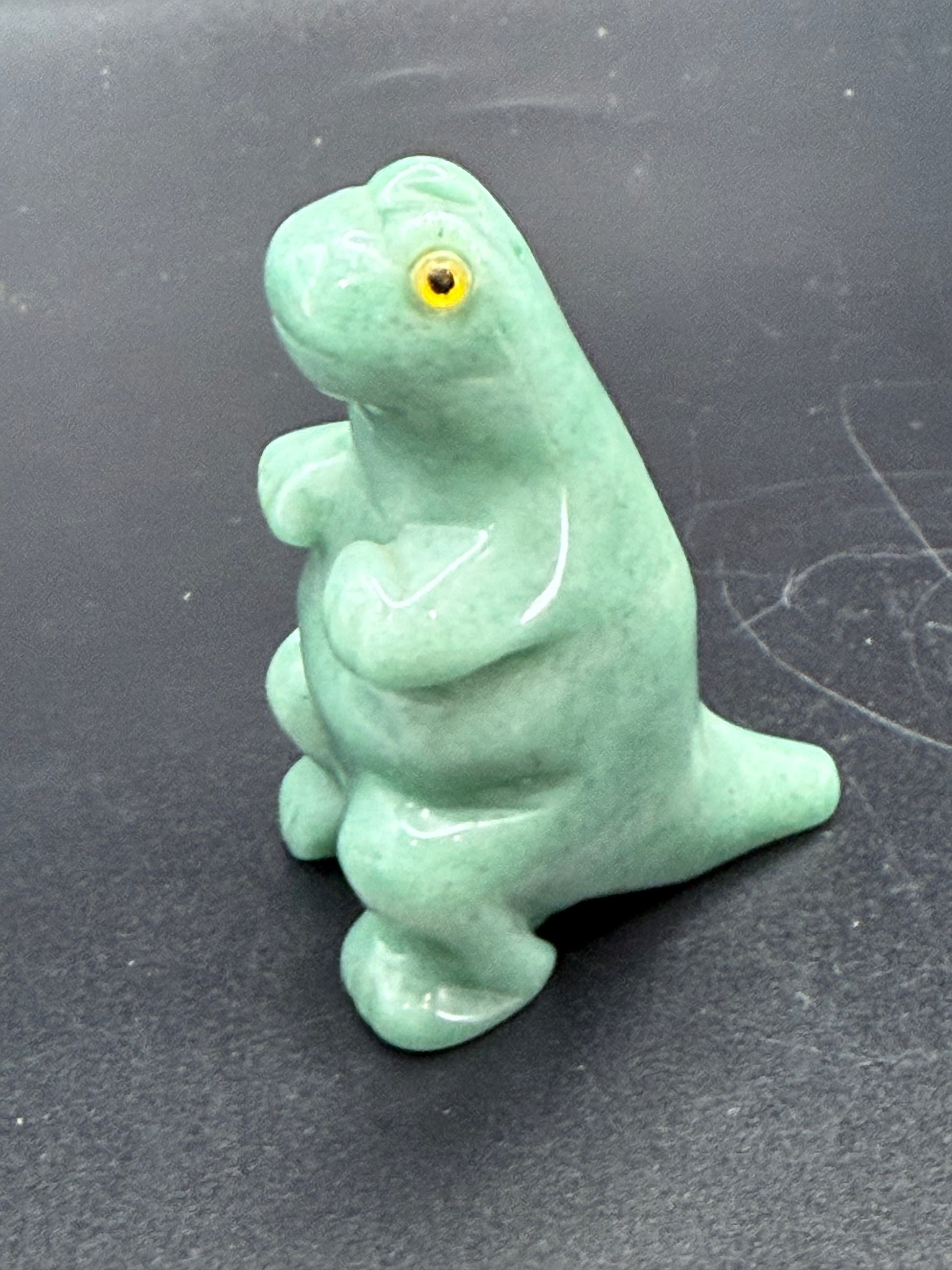 This adorable hand-carved dinosaur figurine is made from genuine Green Aventurine, polished to a smooth shine with painted yellow eyes for extra character.