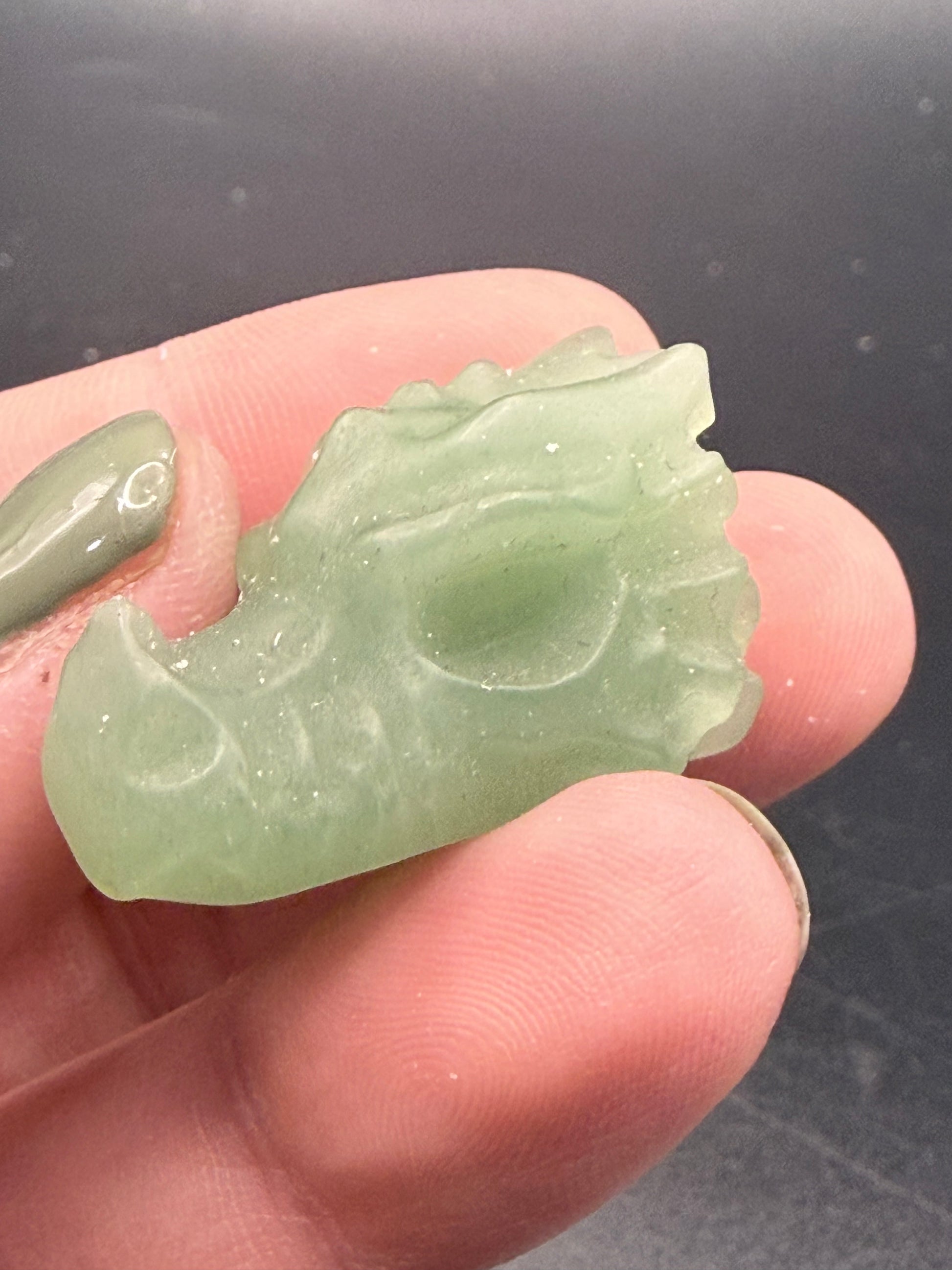 Carved from soothing Green Aventurine, this little dragon head radiates luck, strength, and mystical energy. With its detailed features and calming green hue, itβs perfect for collectors who love both fantasy and crystal magic.