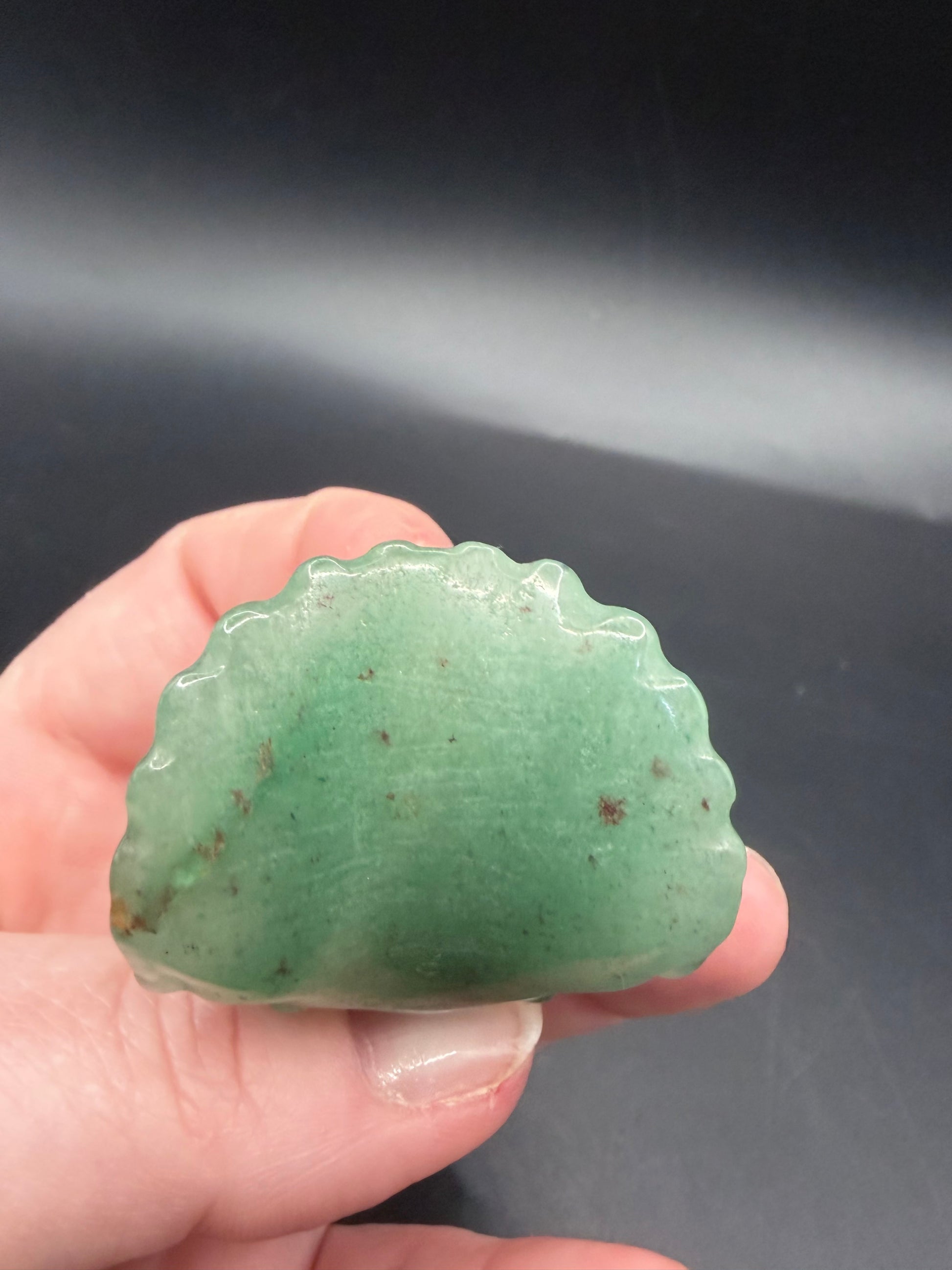 This adorable Green Aventurine Triceratops carving features soft green tones with natural inclusions, beautifully polished to highlight the stone’s gentle glow. Drilled so it can be worn as a pendant or displayed as a small carving, this piece is perfect for dinosaur lovers of all ages.