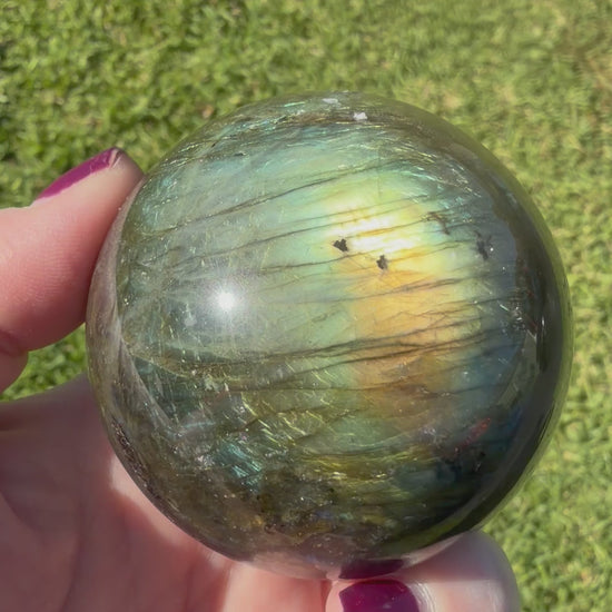 A stunning Labradorite sphere with vibrant blue, aqua and gold flash that shifts beautifully in sunlight and lamplight. Known as the Stone of Transformation, Labradorite supports intuition, psychic awareness and energetic protection — perfect for empaths, readers, healers and manifestors.