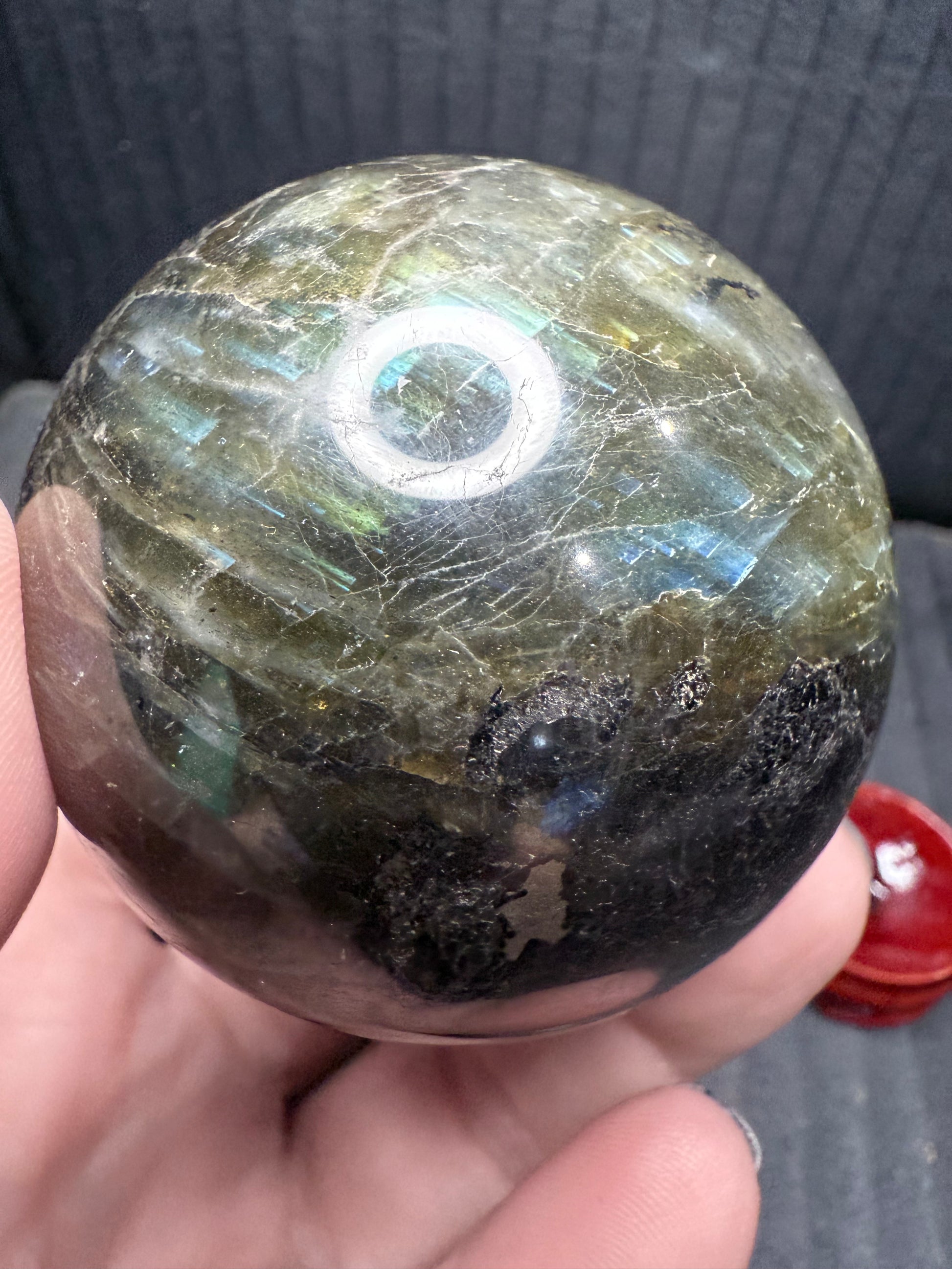 With its enchanting flashes of blue, gold, and green, this Labradorite sphere is a stone of transformation and magic. Known as the “Stone of Mysticism,” Labradorite awakens intuition, strengthens spiritual connection, and protects against negative energies.