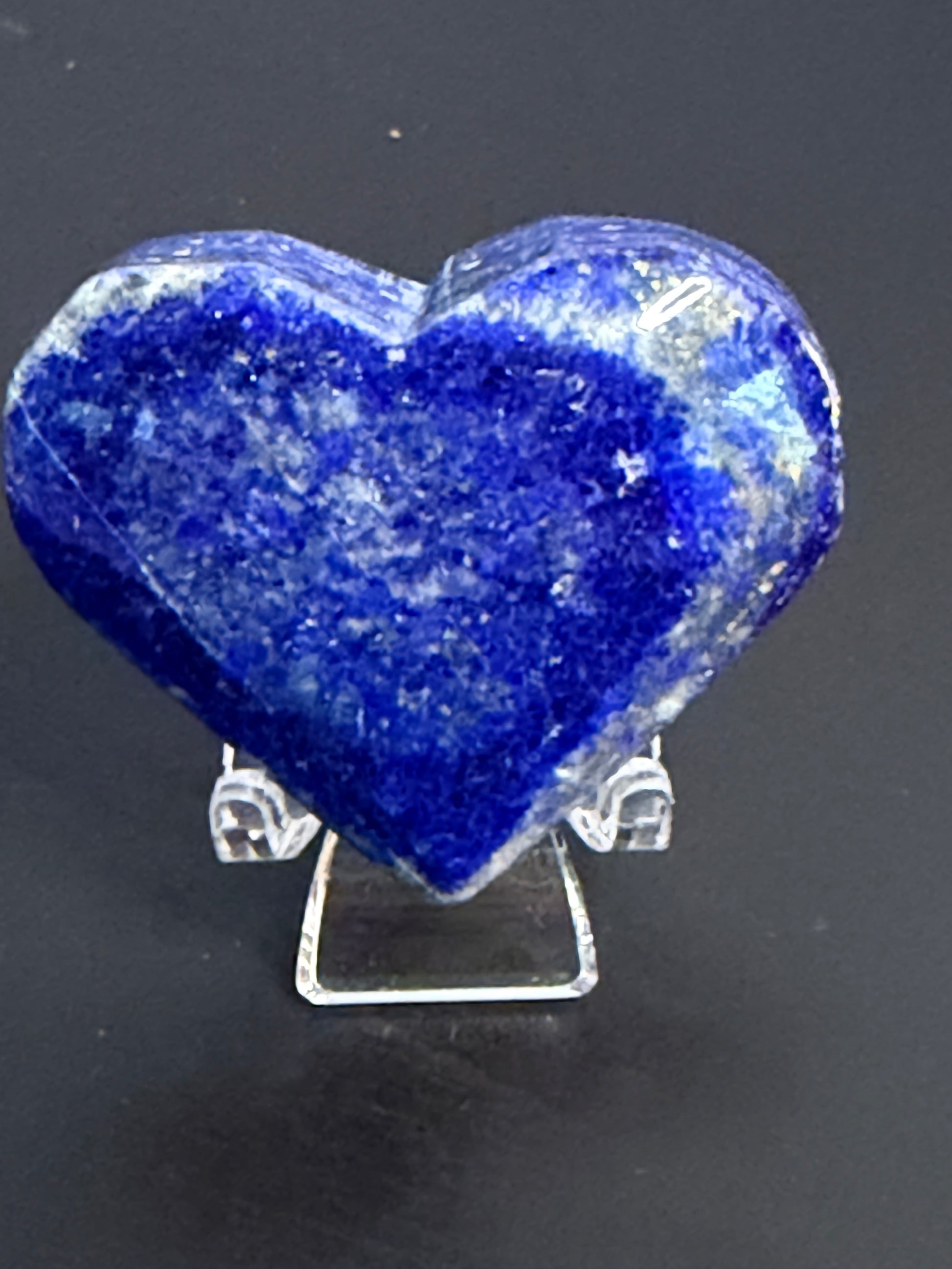 This polished Lapis Lazuli heart features rich deep blue tones with natural flecks of golden pyrite and soft calcite markings, giving it beautiful depth and character. Smoothly polished and perfectly sized, this heart fits comfortably in the hand and displays beautifully on a shelf or stand.