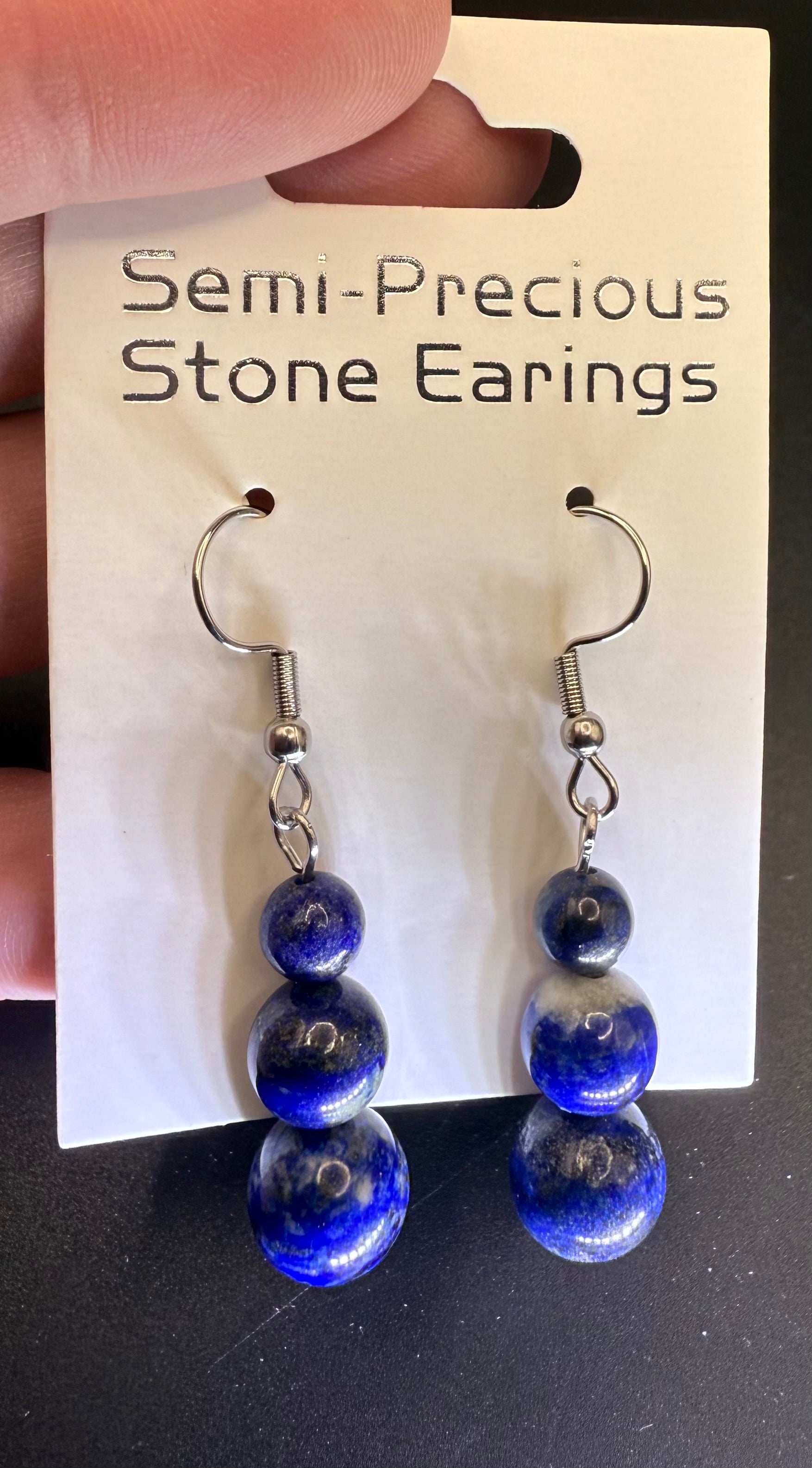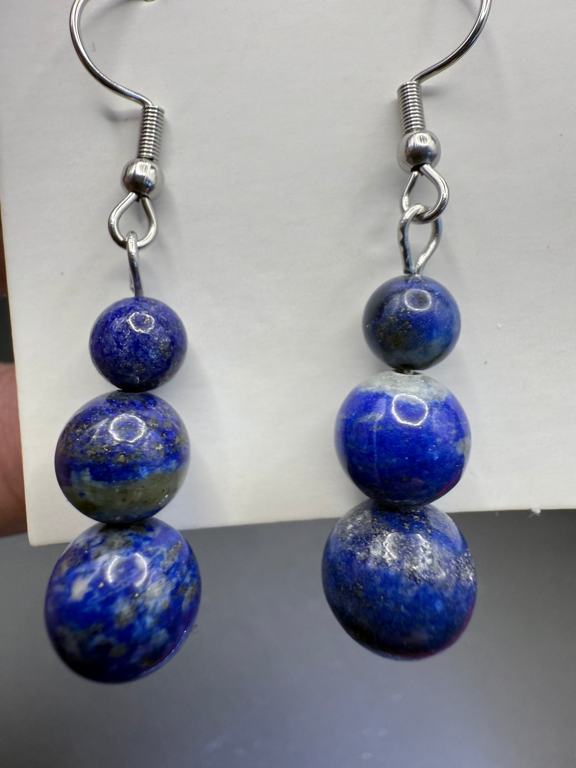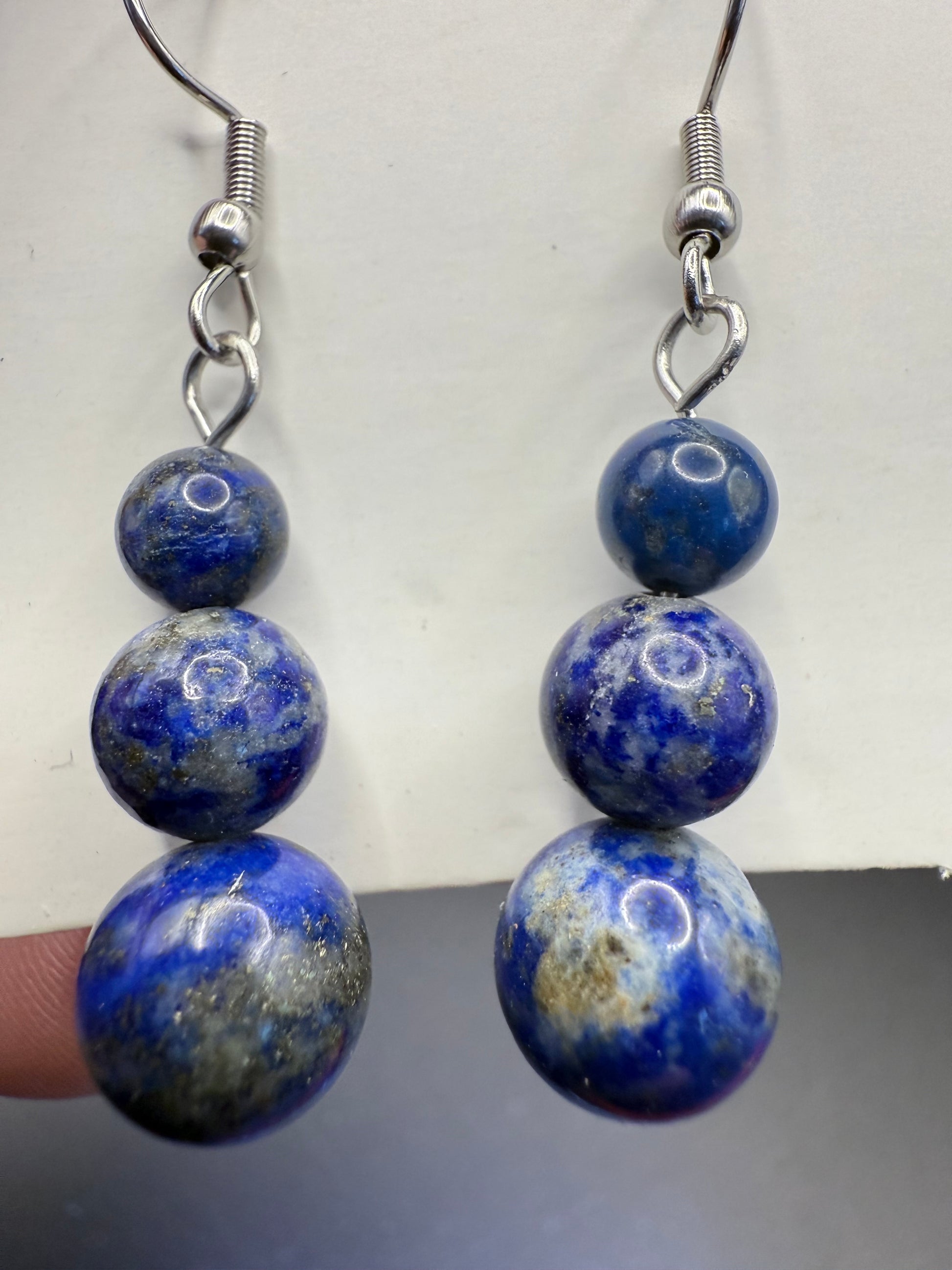 💙 Lapis Lazuli Triple Bead Earrings 💙