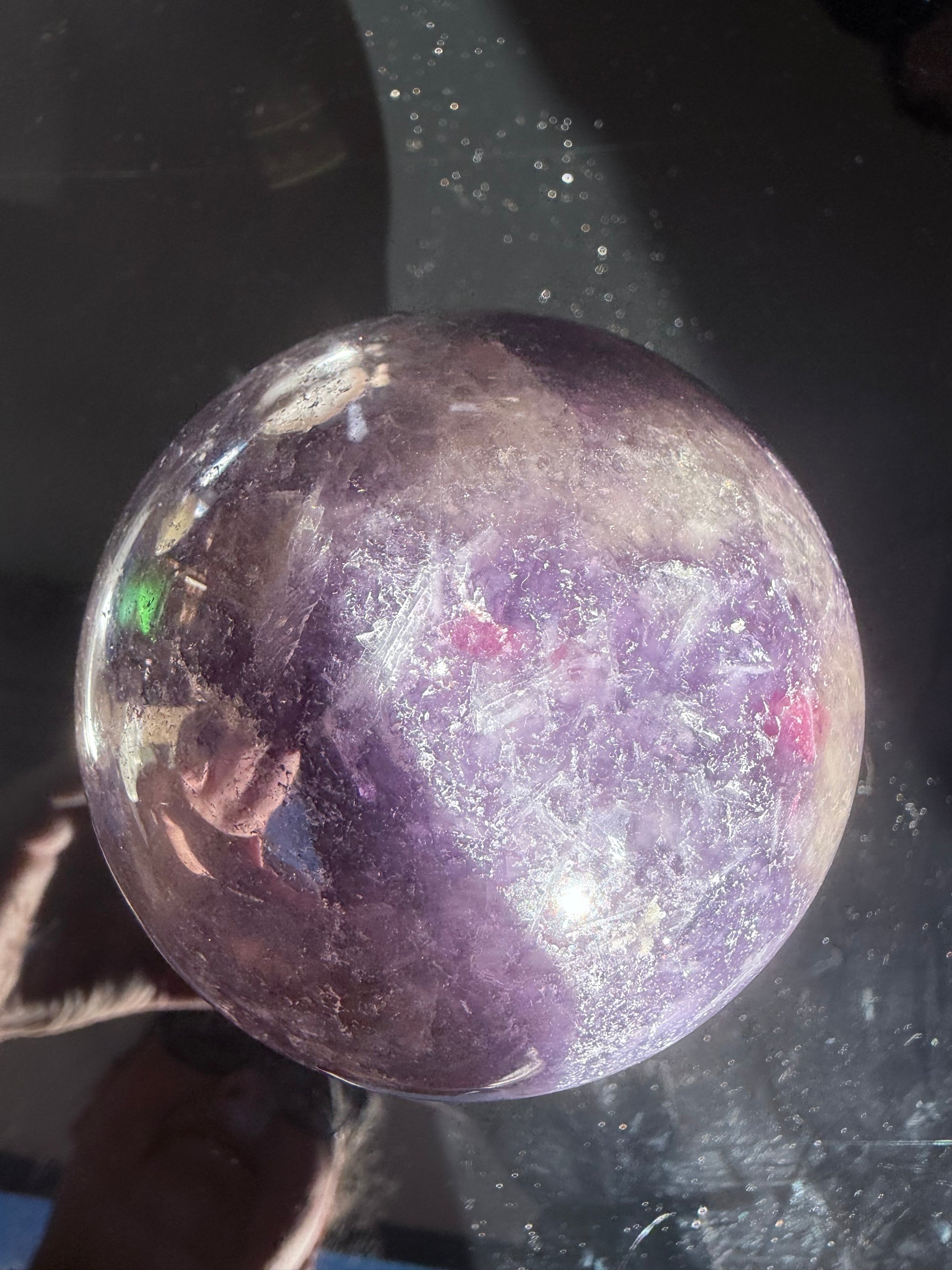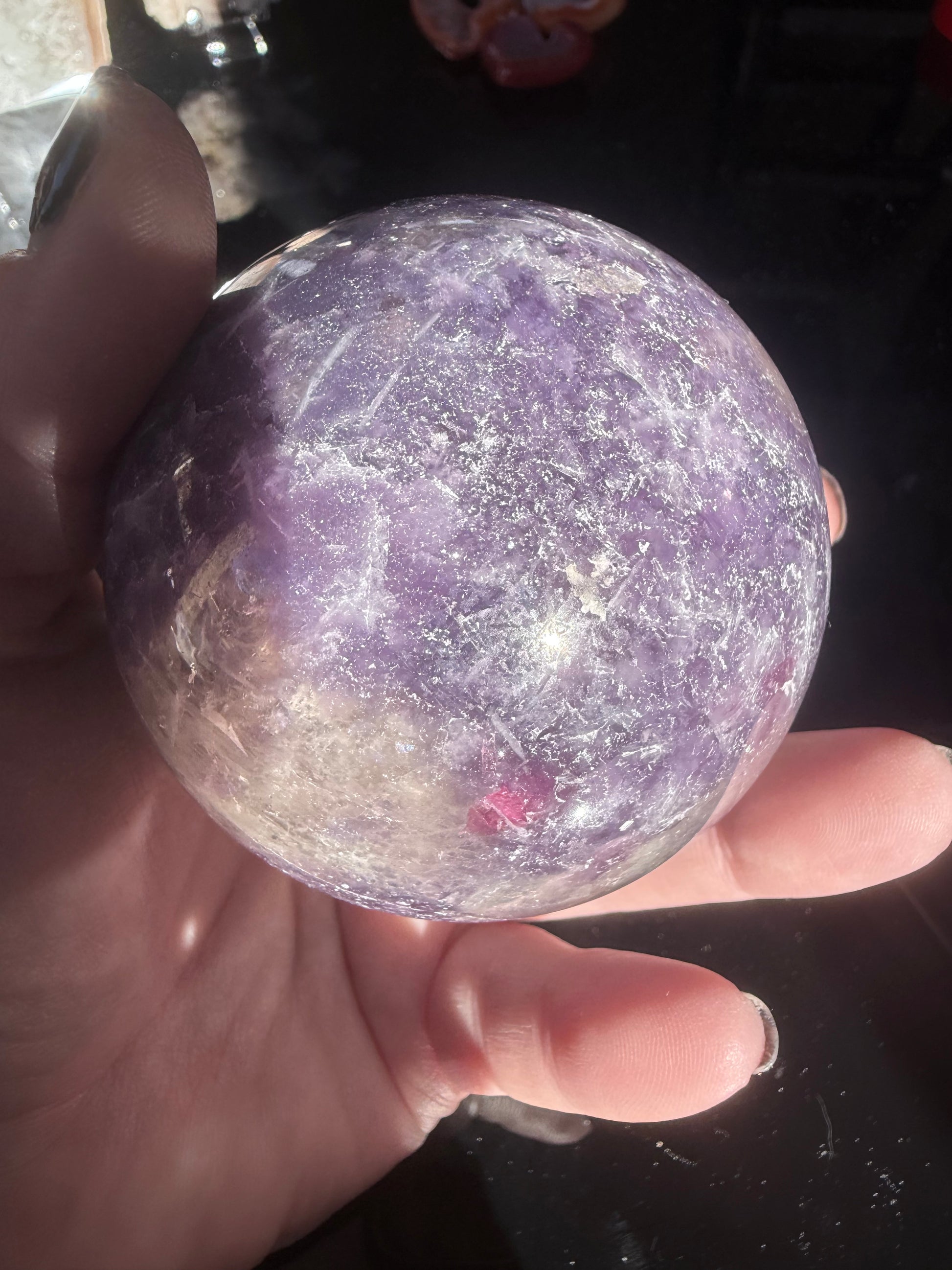Bring a touch of magic into your space with this beautiful Unicorn Stone Sphere — a rare and nurturing crystal known for its soothing pastel tones and gentle energy. Unicorn Stone is a natural combination of Lepidolite, Pink Tourmaline, Smoky Quartz, and Clevelandite, making it a powerful yet calming stone for emotional support and inner peace.
