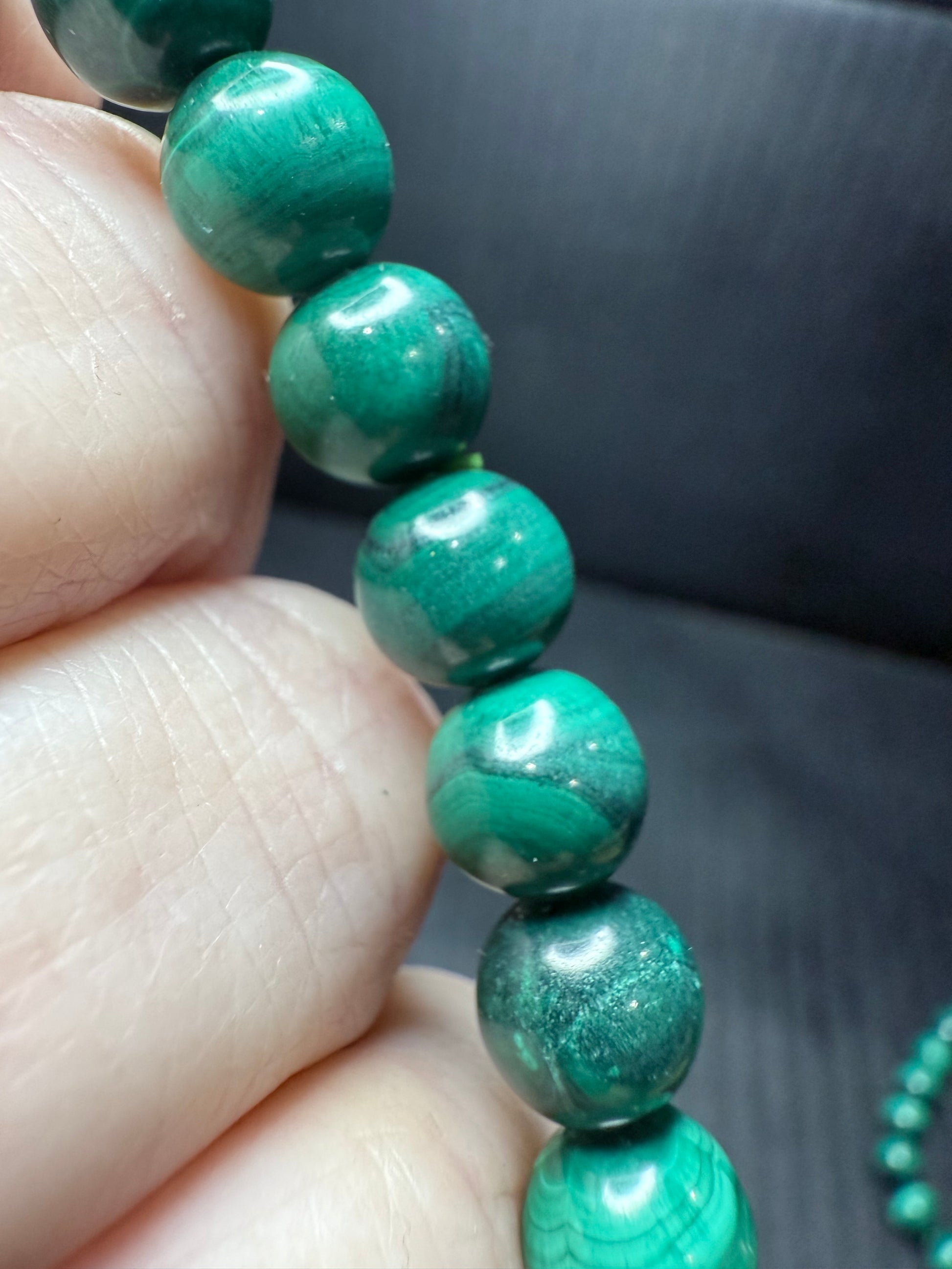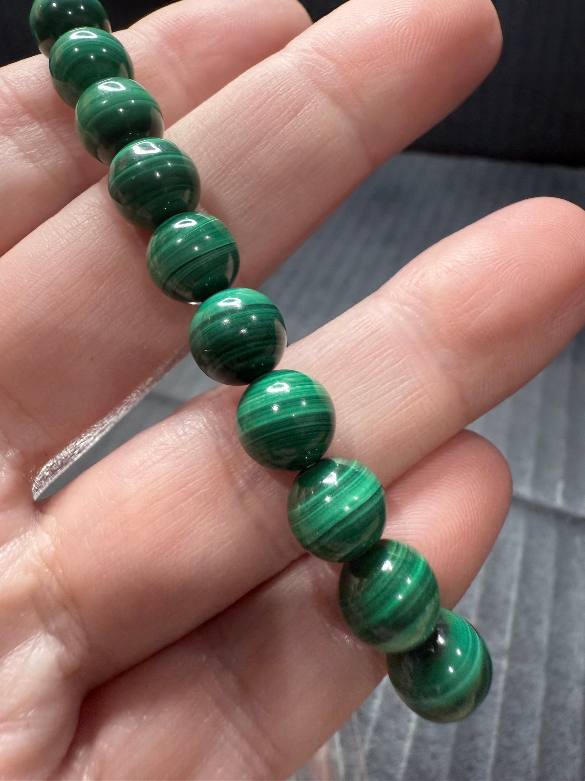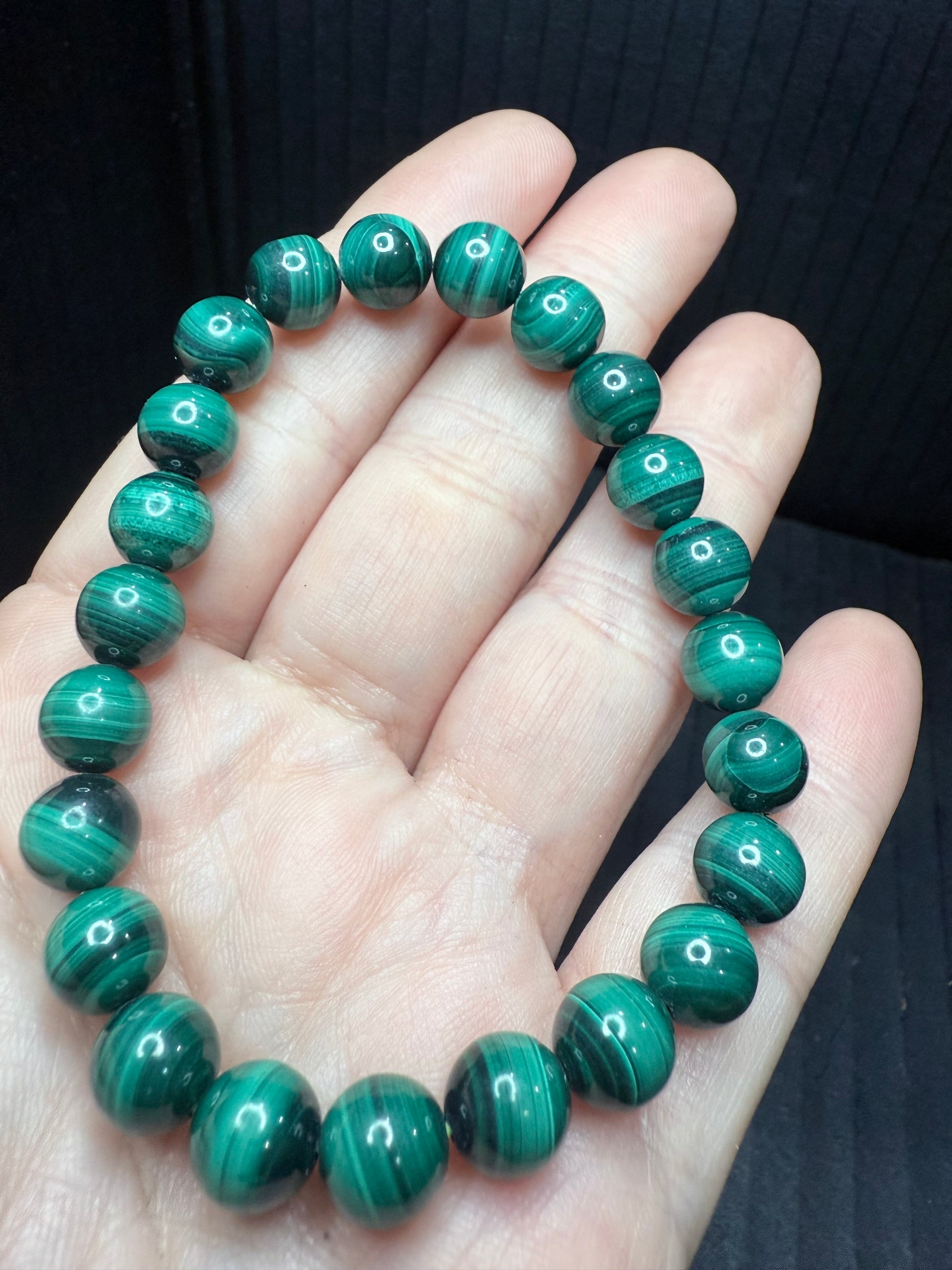 This striking Malachite bracelet showcases the stone’s rich, vibrant green bands that symbolize transformation and protection. Malachite is known for its powerful energy to absorb negative vibrations and promote emotional healing, making this bracelet both a beautiful accessory and a protective talisman.