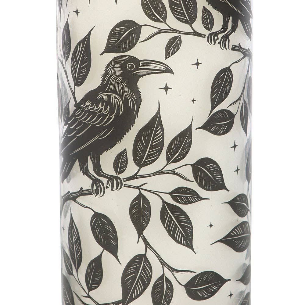 Enhance your environment with this elegant glass tube candle, featuring a captivating deadly nightshade-inspired design. It is an ideal choice for creating a mysterious ambiance, making it a wonderful gift for candle enthusiasts with a penchant for the gothic aesthetic. With an approximate burn time of 70 hours, it offers a long-lasting and enchanting experience. This candle is part of the Mystic Raven collection, a range of gothic home décor and accessories.