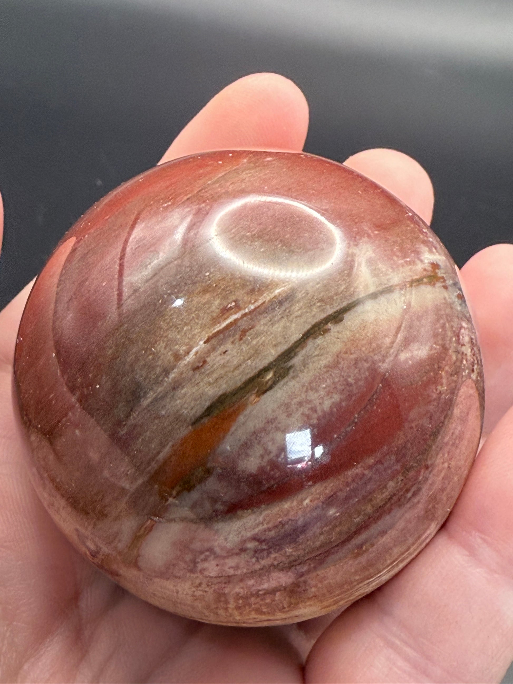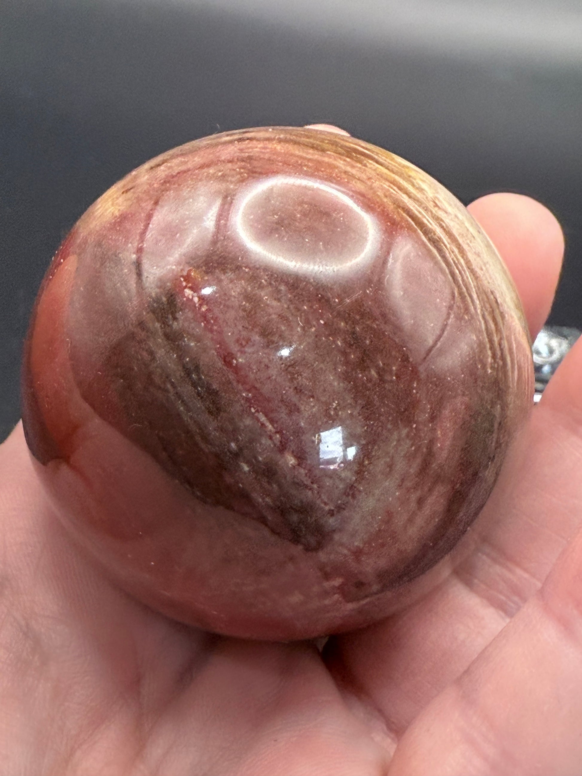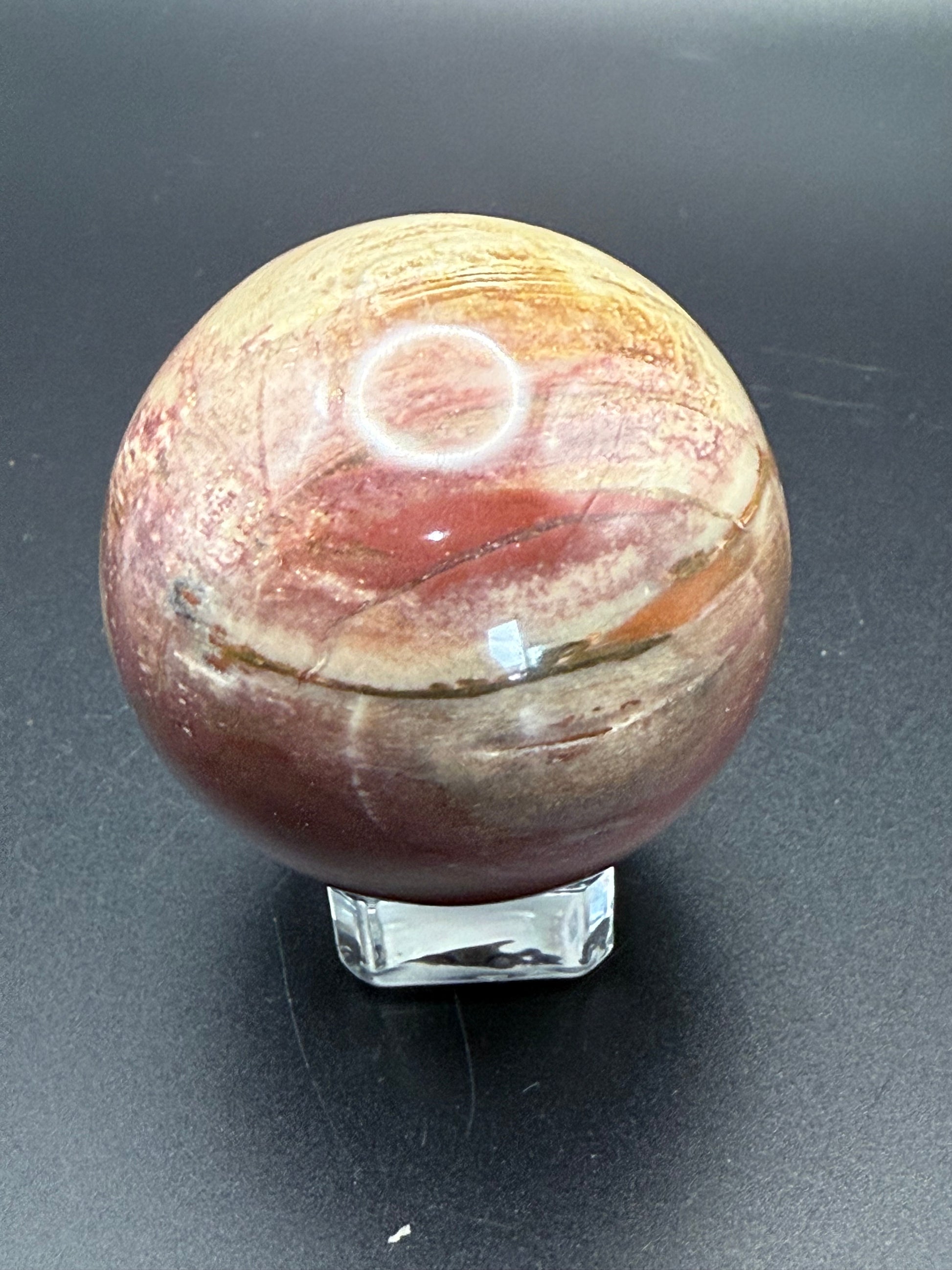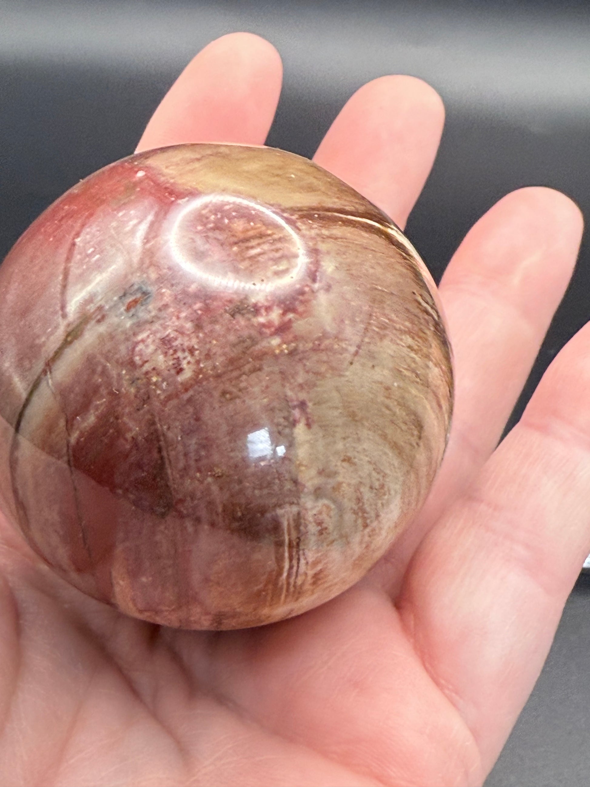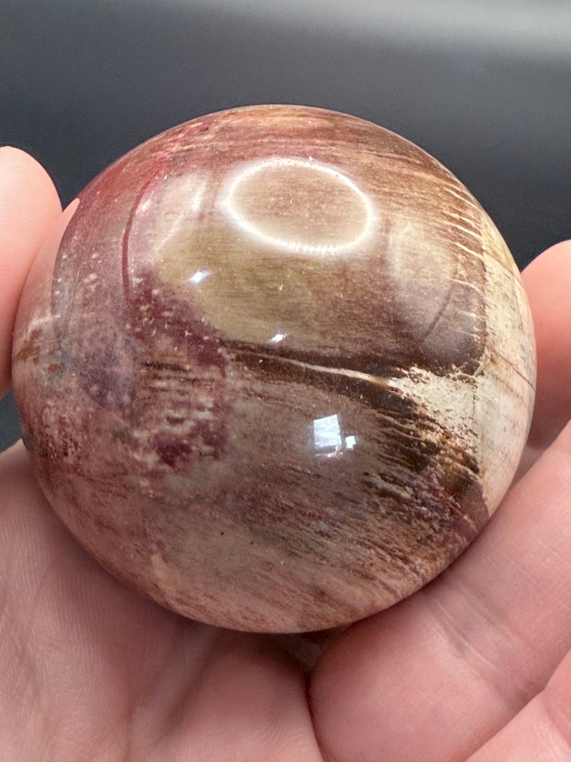 This captivating Petrified Wood sphere carries the ancient energy of the Earth, formed over millions of years as organic wood transformed into stone. Its earthy tones and natural grain patterns tell a story of time, strength, and transformation.