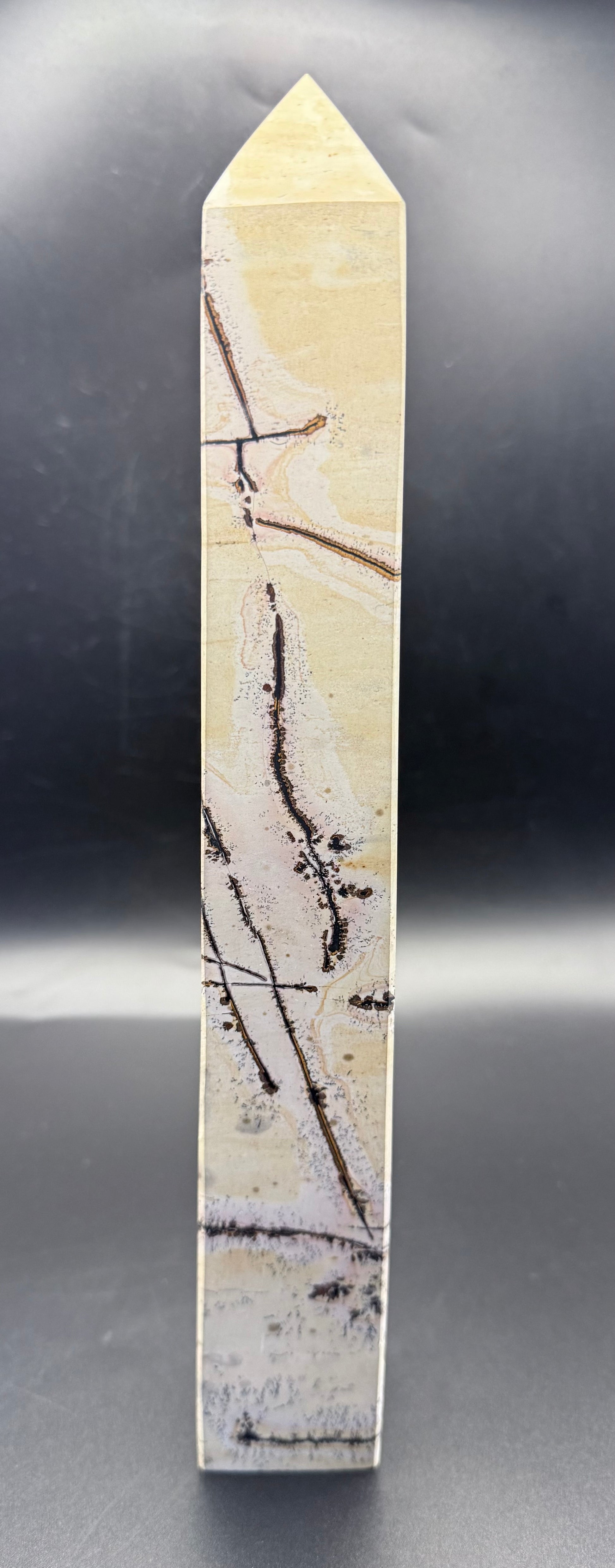 This impressive Picture Jasper tower is a one-of-a-kind statement piece that radiates grounding energy and natural beauty. Standing tall at 29cm and weighing 941g, it features breathtaking earthy beige, cream, and brown tones with unique scenic patterns that resemble mountains, landscapes, and desert horizons โ truly like holding a painting crafted by Mother Earth.
