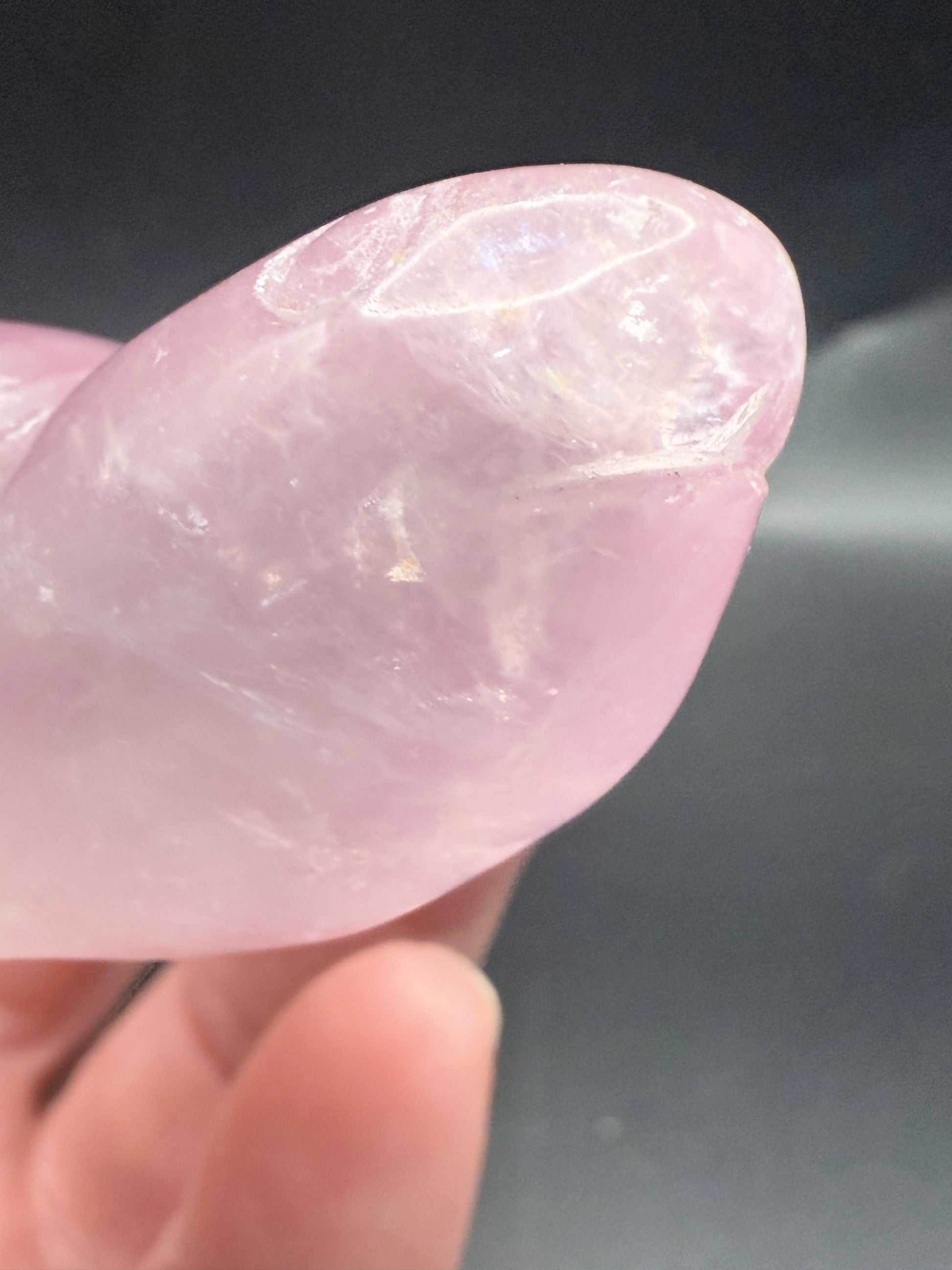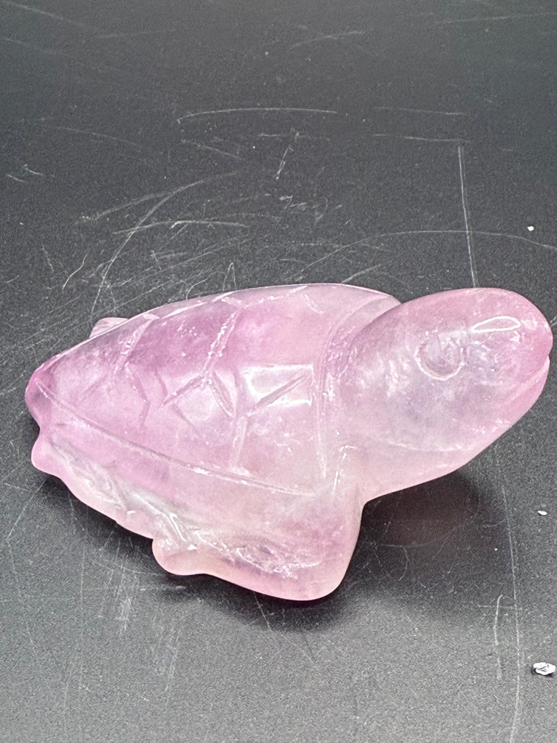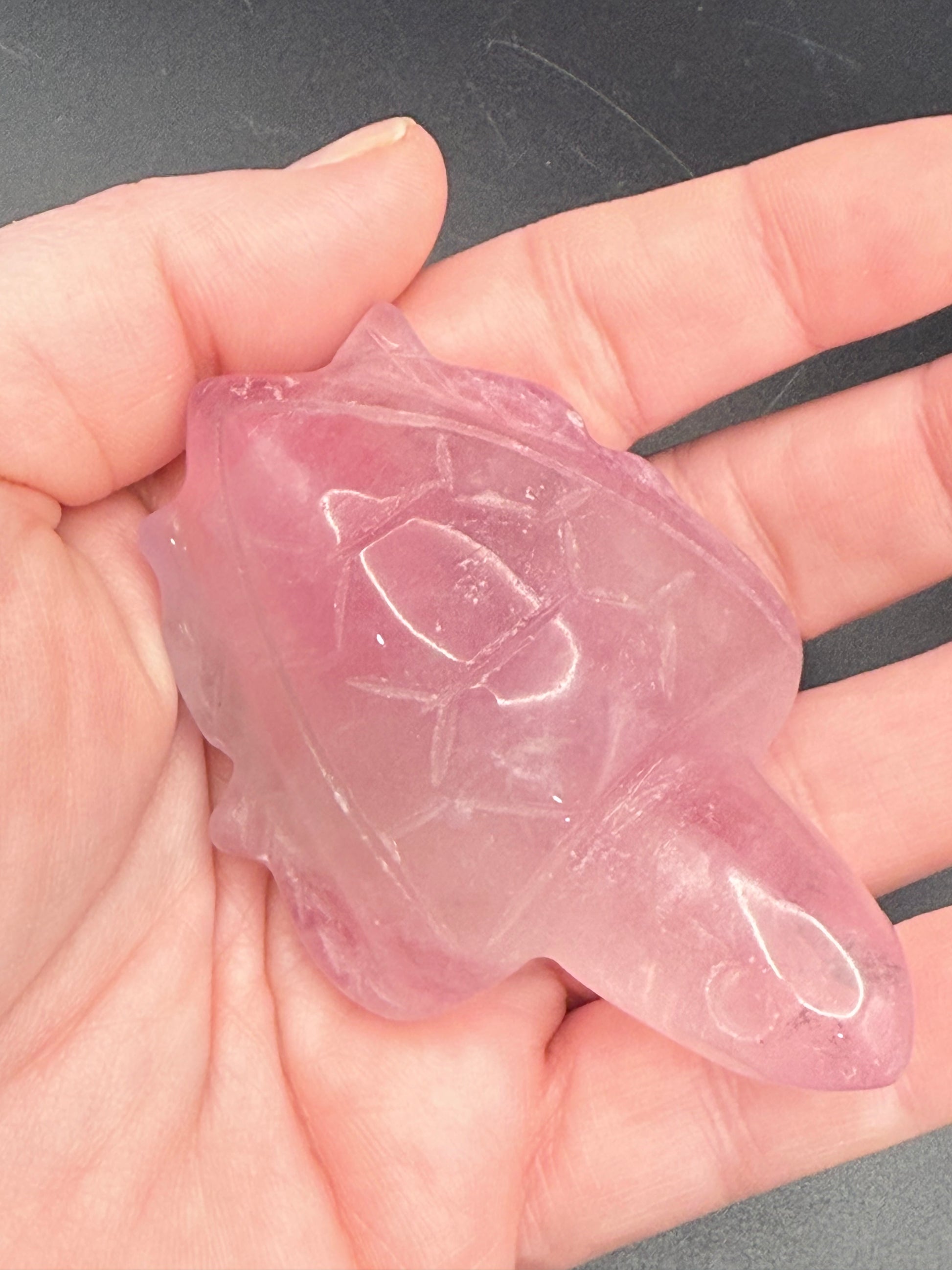 This rare Pink Fluorite turtle carving glows with soft pastel pink tones, radiating gentle and uplifting energy. Pink Fluorite is much rarer than its green and rainbow varieties, making this piece extra special. Combined with the turtle’s symbolism of wisdom, patience, and protection, this carving is both meaningful and powerful.