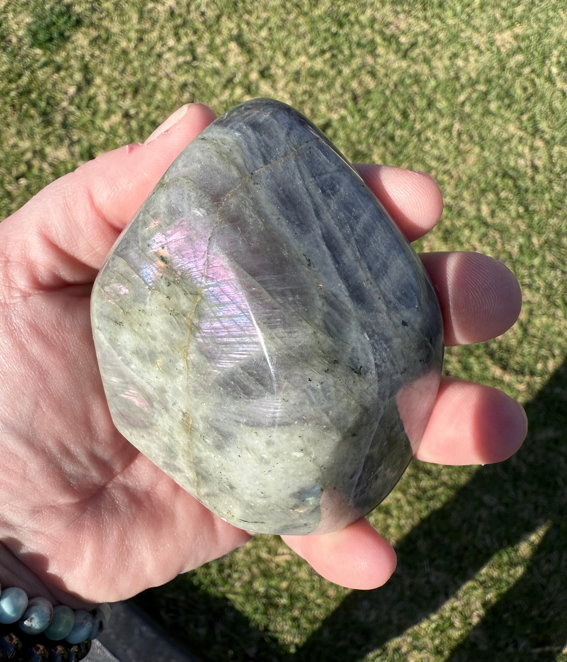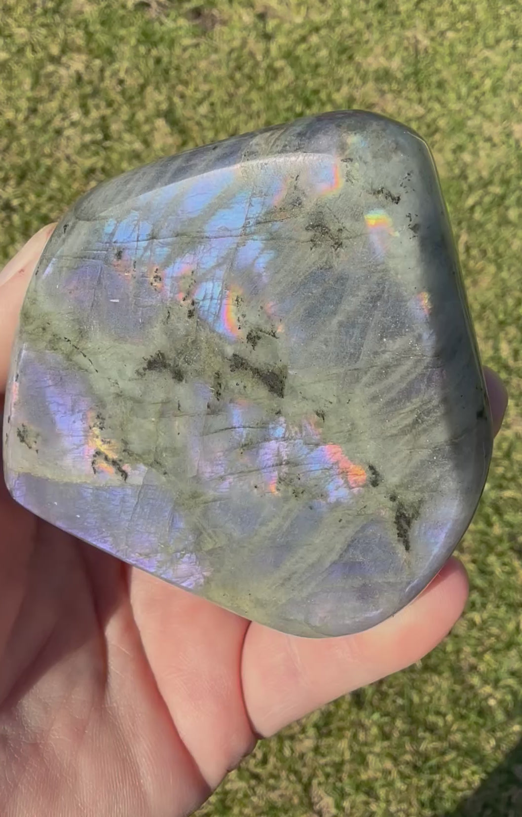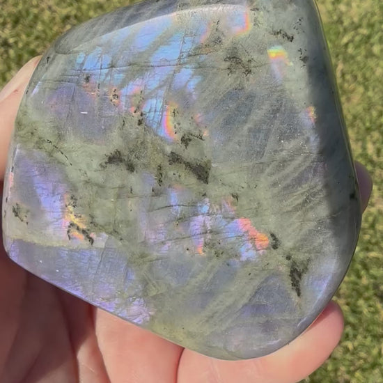 This unique Labradorite freeform weighs 326g and measures 7.5 Ć 7cm. It displays an enchanting play of colors, with purple, pink, gold, and rainbow flashes shimmering across its surface šš. A smaller size, but full of magical energy and beauty!