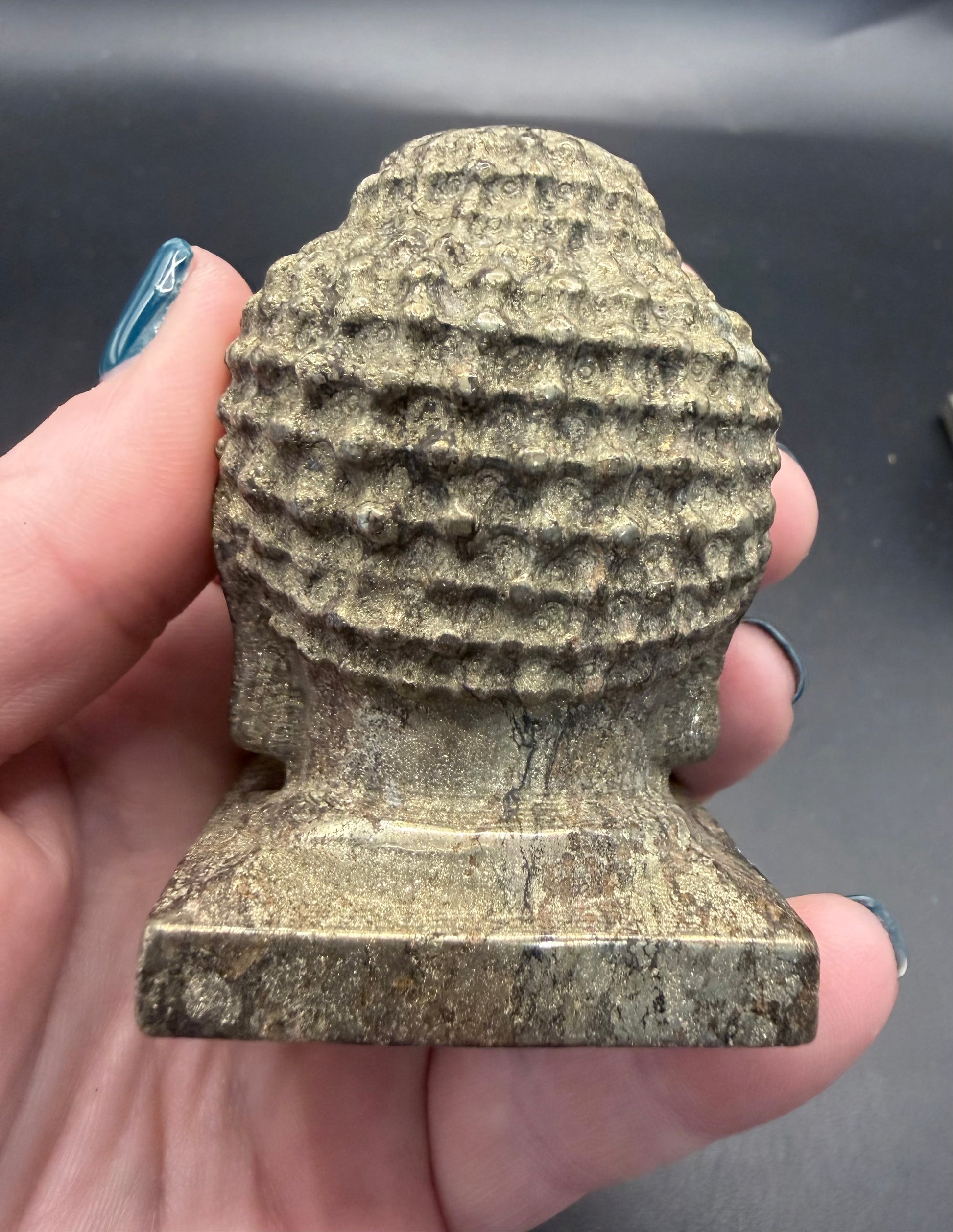Pyrite Buddha Head Carving β 6 Γ 4 cm