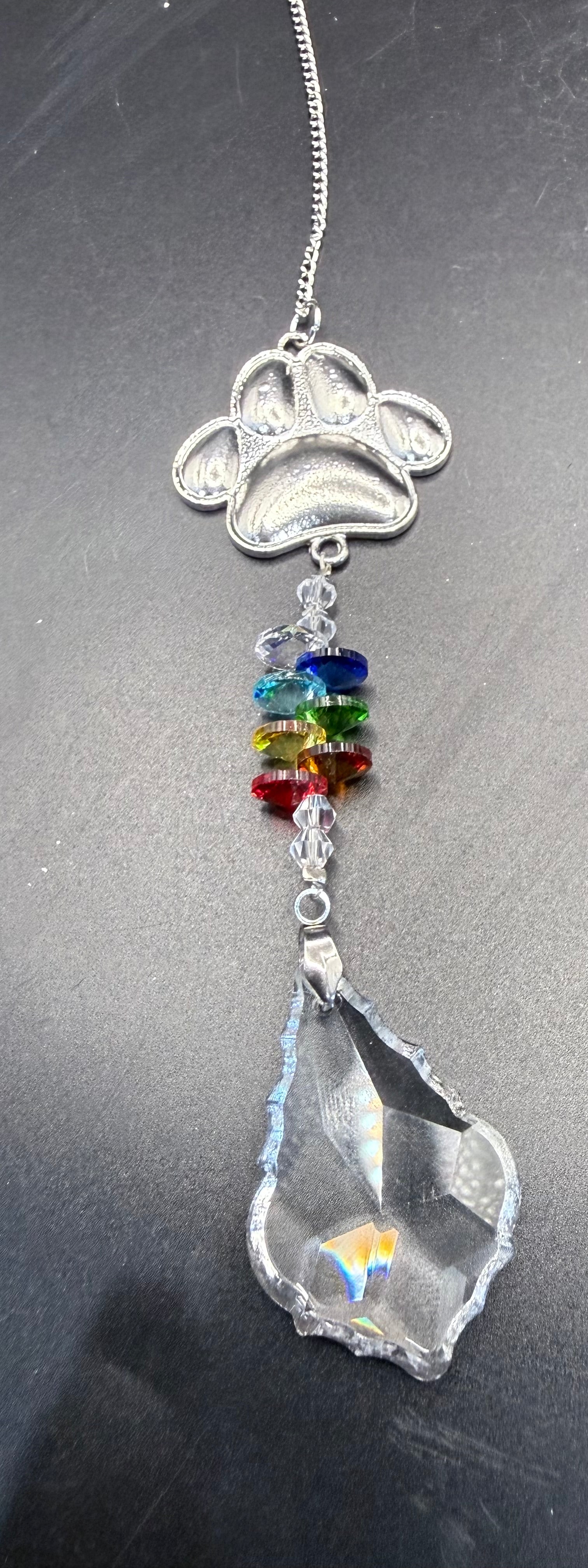 Rainbow Paw Print Crystal Suncatcher