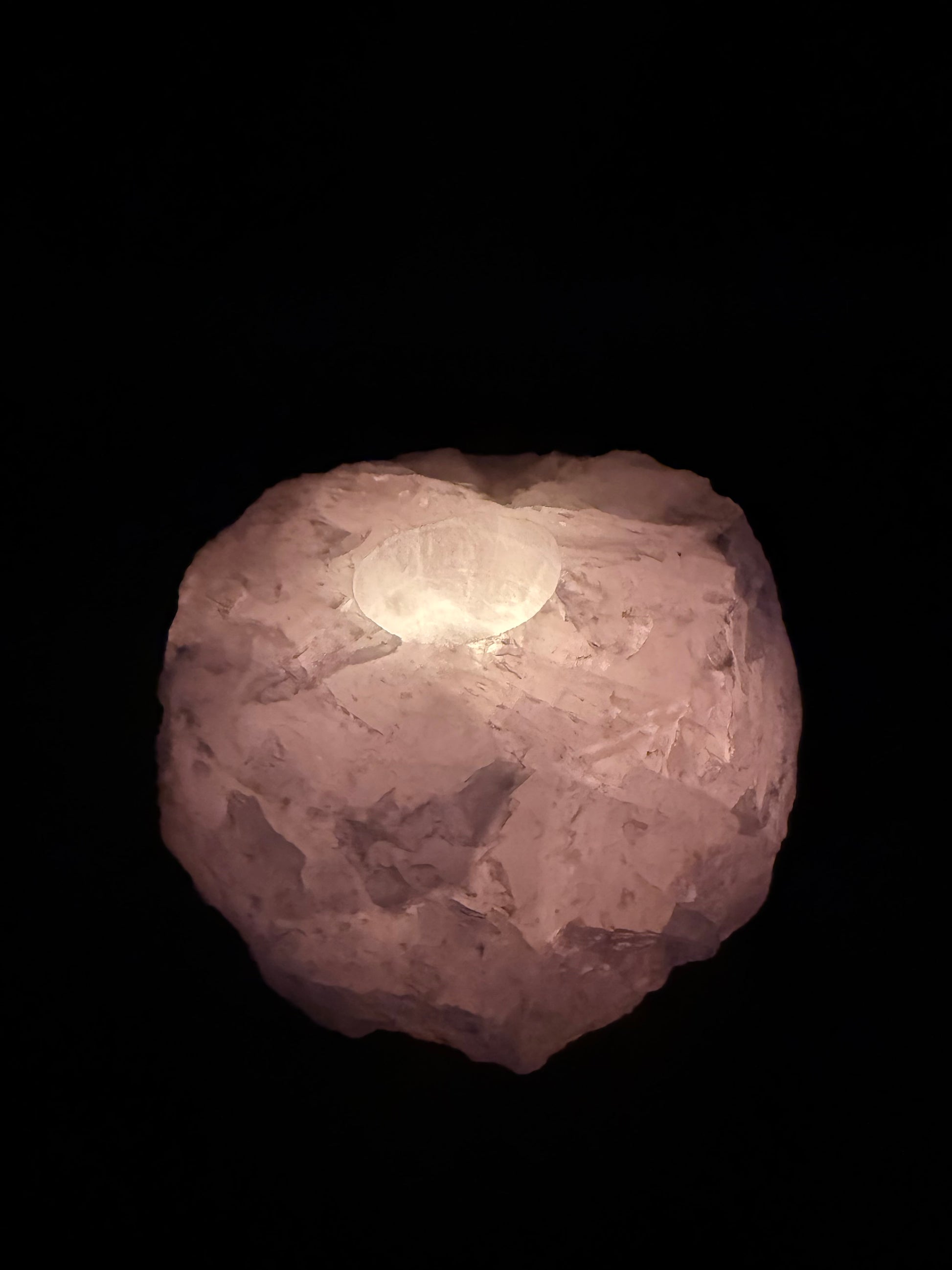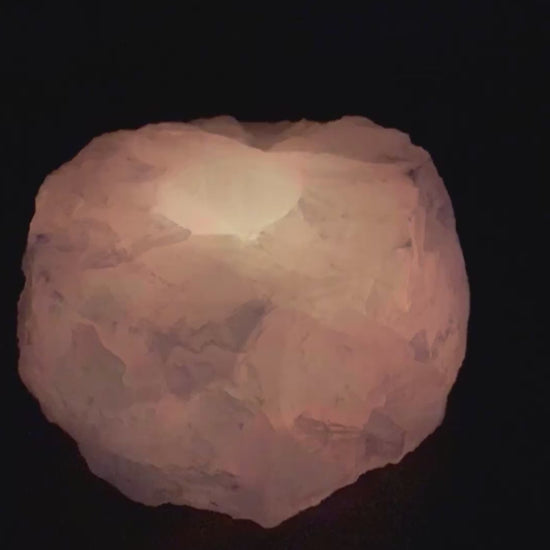 Bring gentle loving energy into your space with this chunky, natural Rose Quartz candle holder. Each piece is beautifully raw and unique, displaying its blush-pink tones and natural crystal texture.