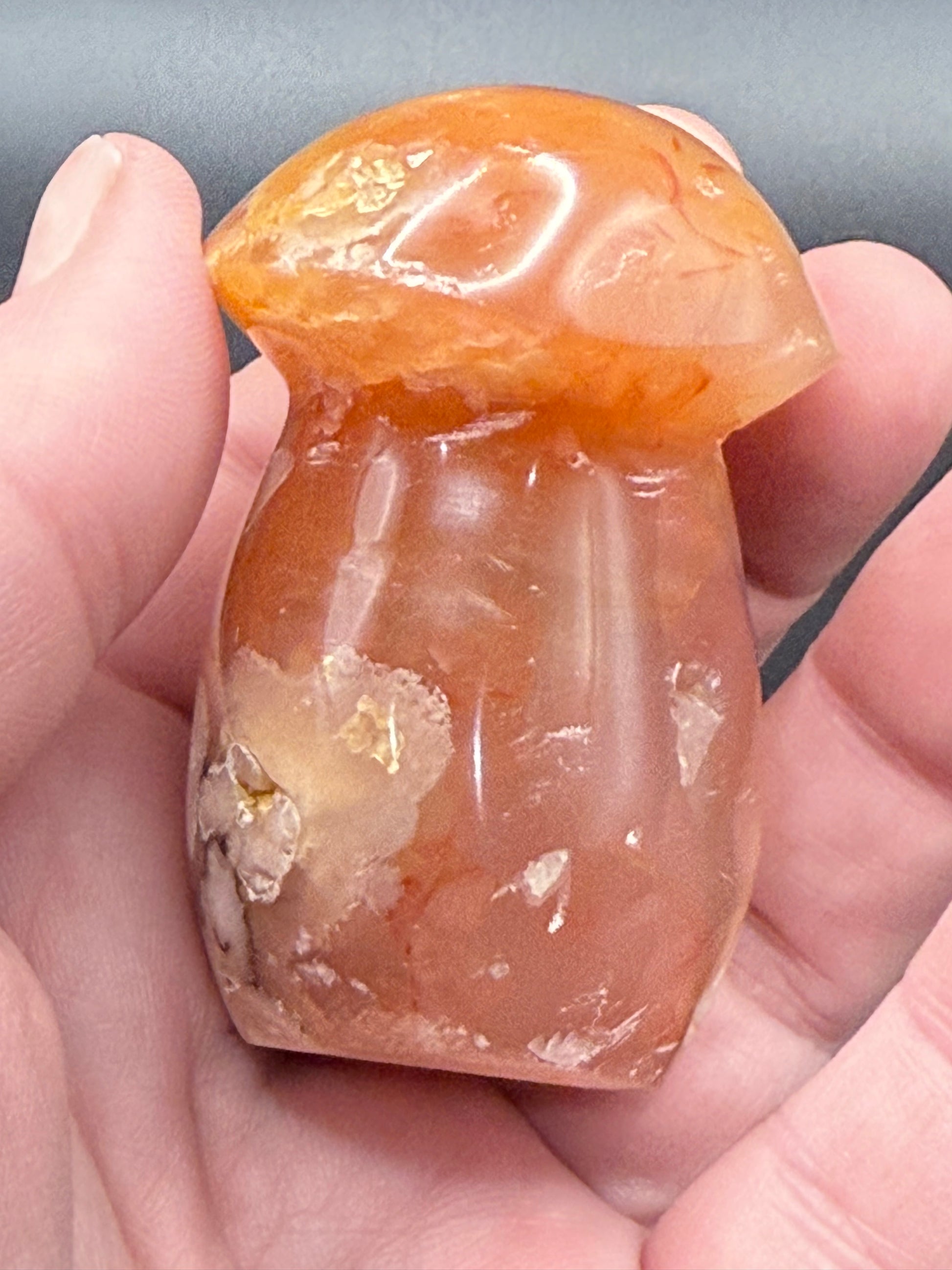 Bring charm and natural beauty into your space with this delightful Sakura Flower Agate mushroom. Its soft pink tones and intricate flower-like patterns make each piece completely unique.