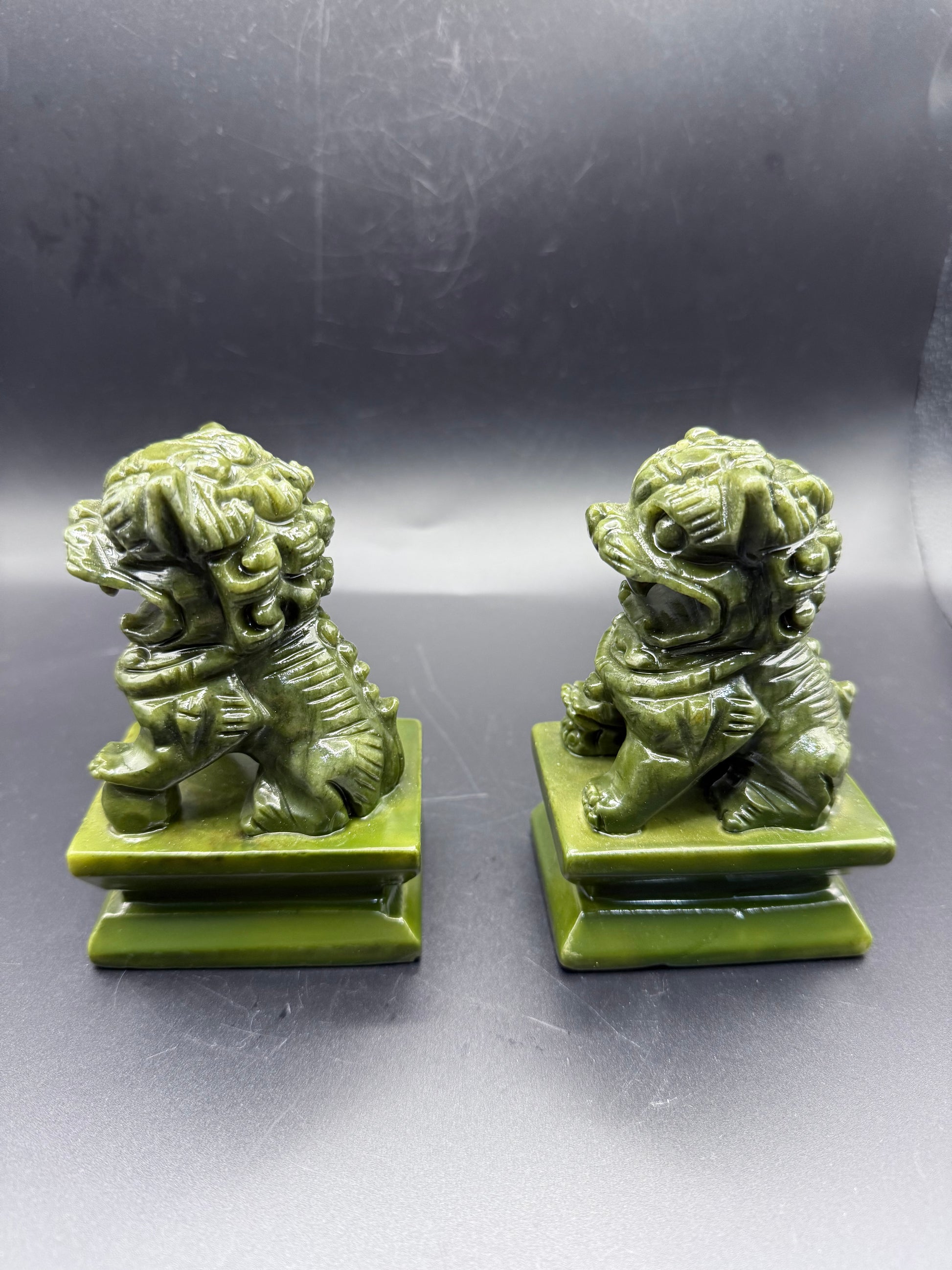๐๐ Serpentine (Green Jade) Foo Dogs โ Pair ๐๐