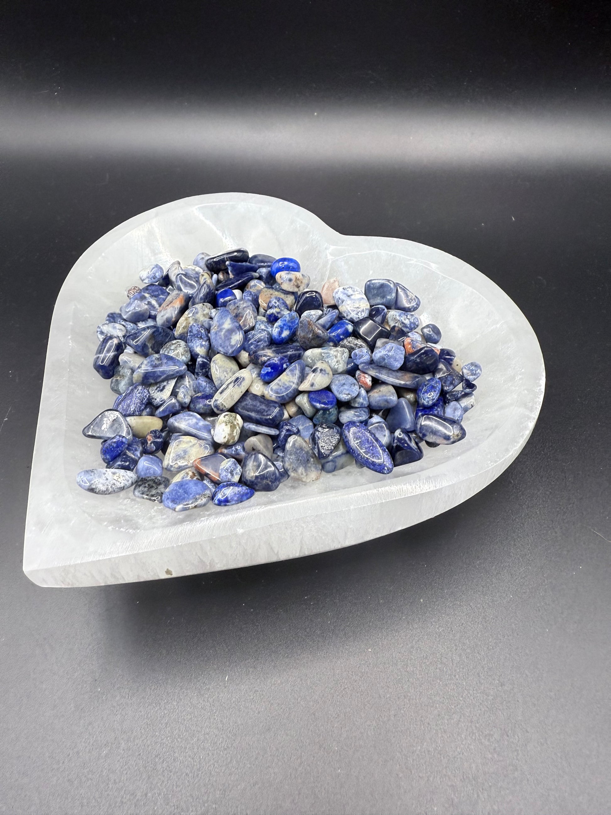 Sodalite is known as the stone of truth and intuition, helping to clear the mind and encourage honest communication. These beautiful blue-and-white chips are perfect for crystal grids, resin art, or keeping nearby for a boost of mental clarity.