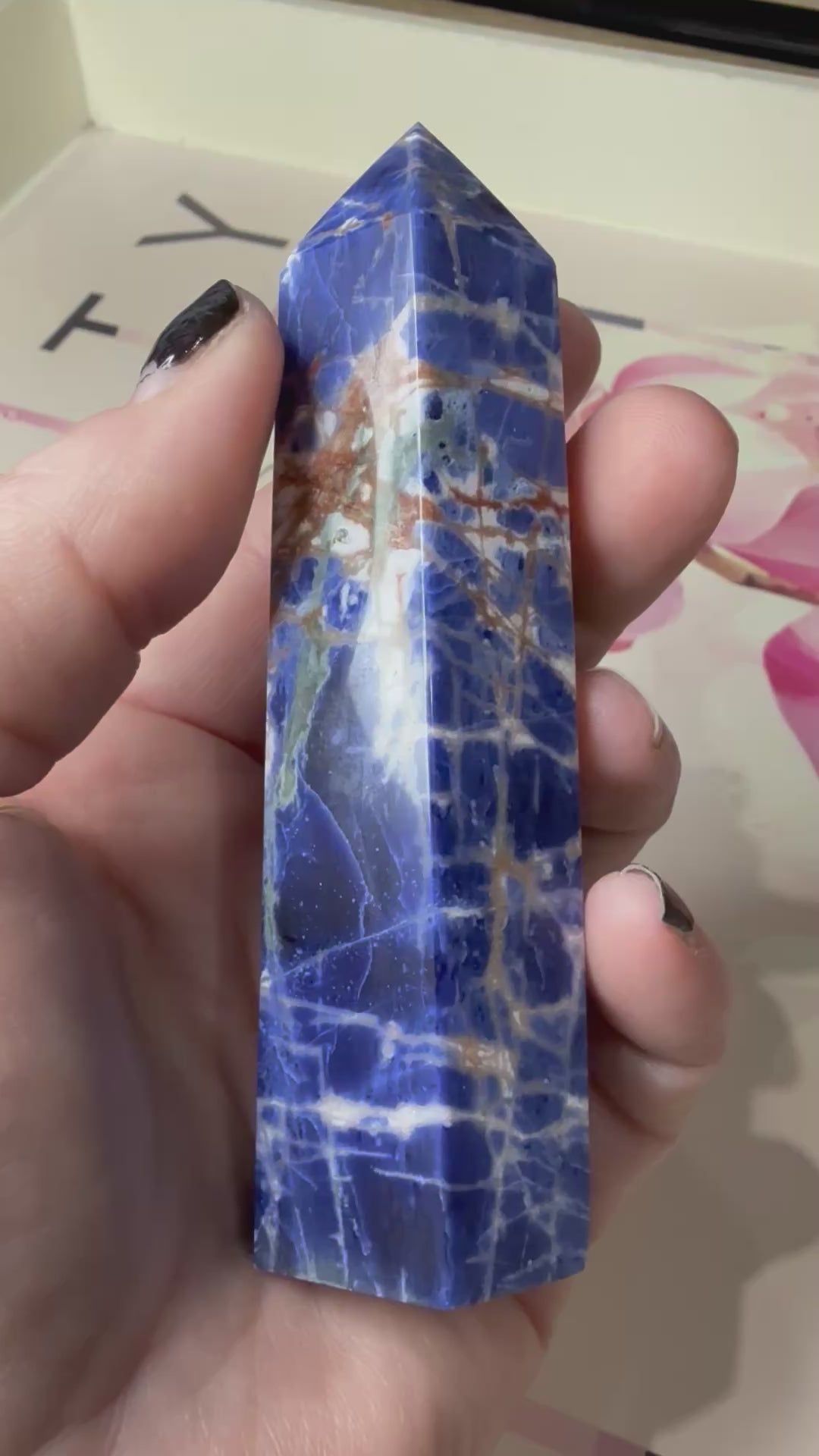 Sodalite! š It's a beautiful blue crystal, often with white streaks or flecks, known for its calming and soothing energy. Sodalite is believed to promote: