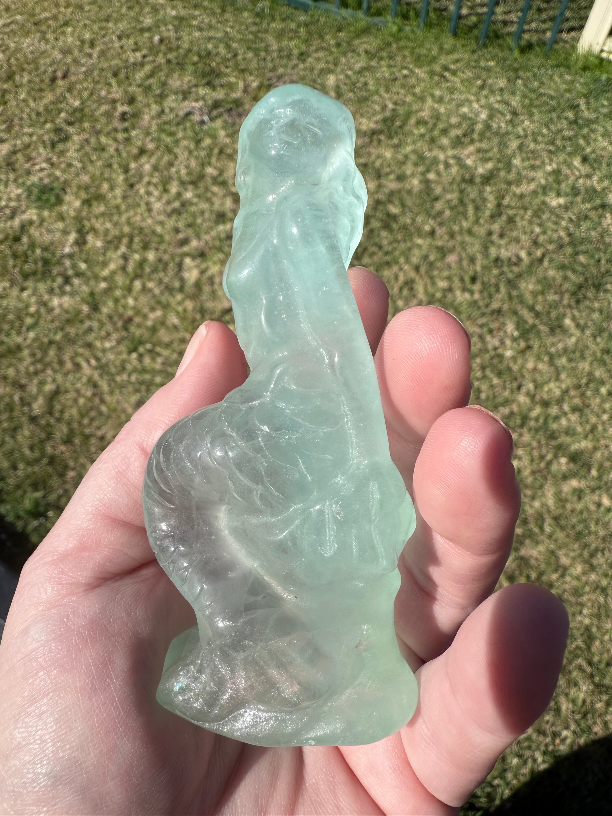 This gorgeous mermaid carving is made from Candy Fluorite, glowing with dreamy aqua-green tones and natural translucence šš. The detailing in her flowing hair and tail makes her a truly magical piece, perfect for display, spiritual work, or gifting.