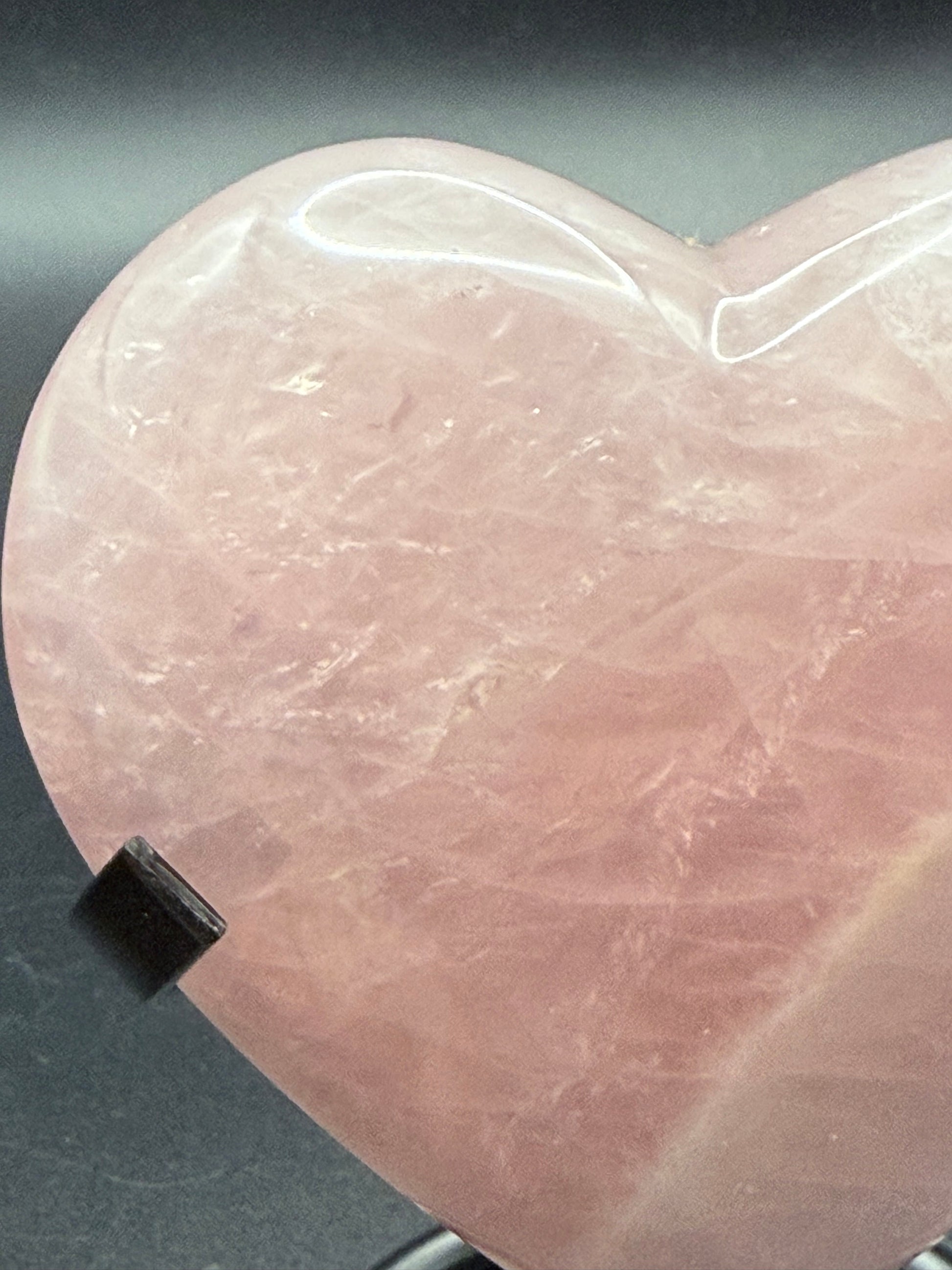 This gorgeous Rose Quartz heart has been beautifully polished to showcase its soft, natural pink tones and calming energy. Measuring 8.8 x 8.4 cm and weighing 315g, itβs a substantial piece perfect for display on a stand or lying flat in your space.